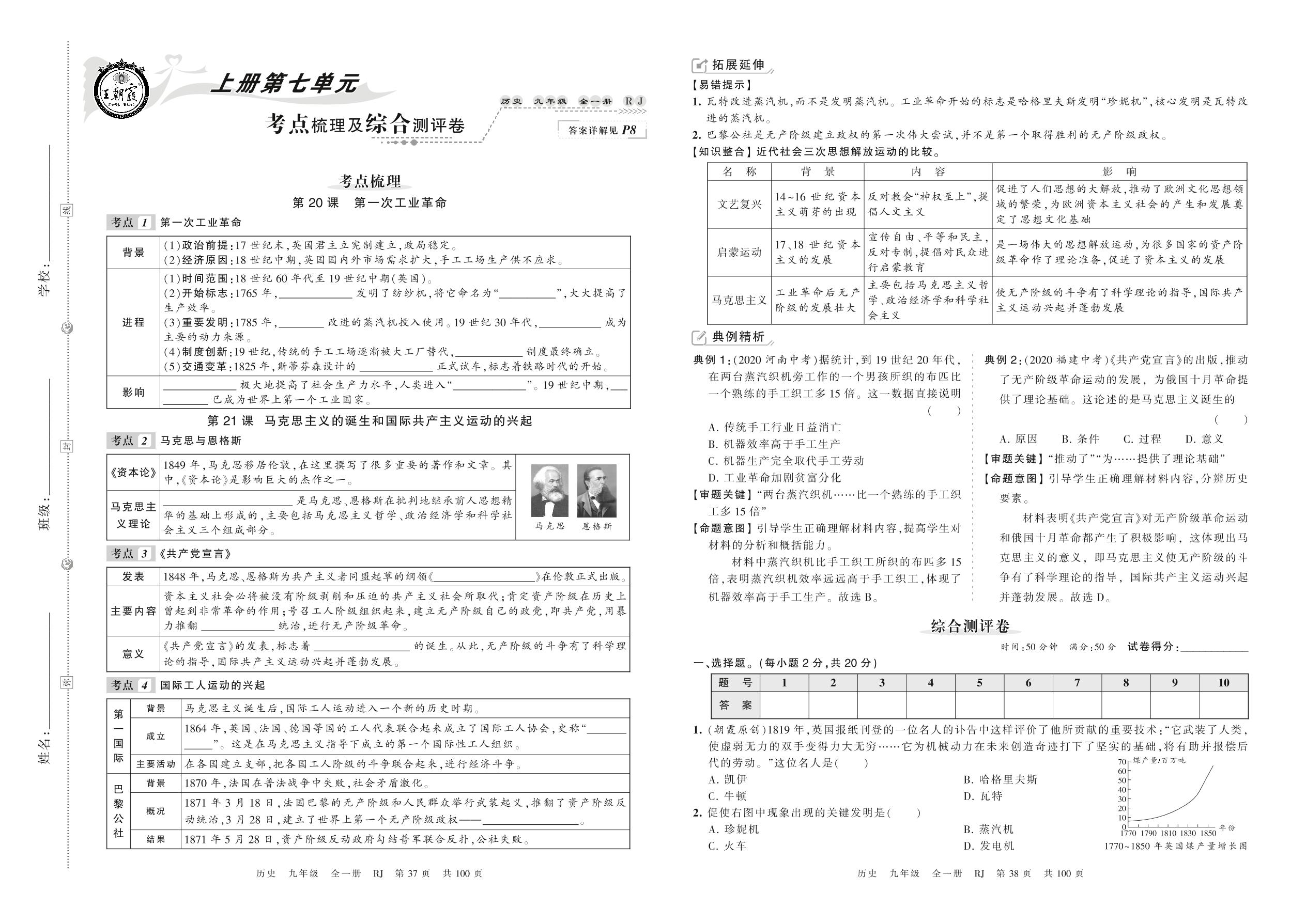 2021秋上册九年级历史人教版 第七单元 考点梳理及综合测评卷