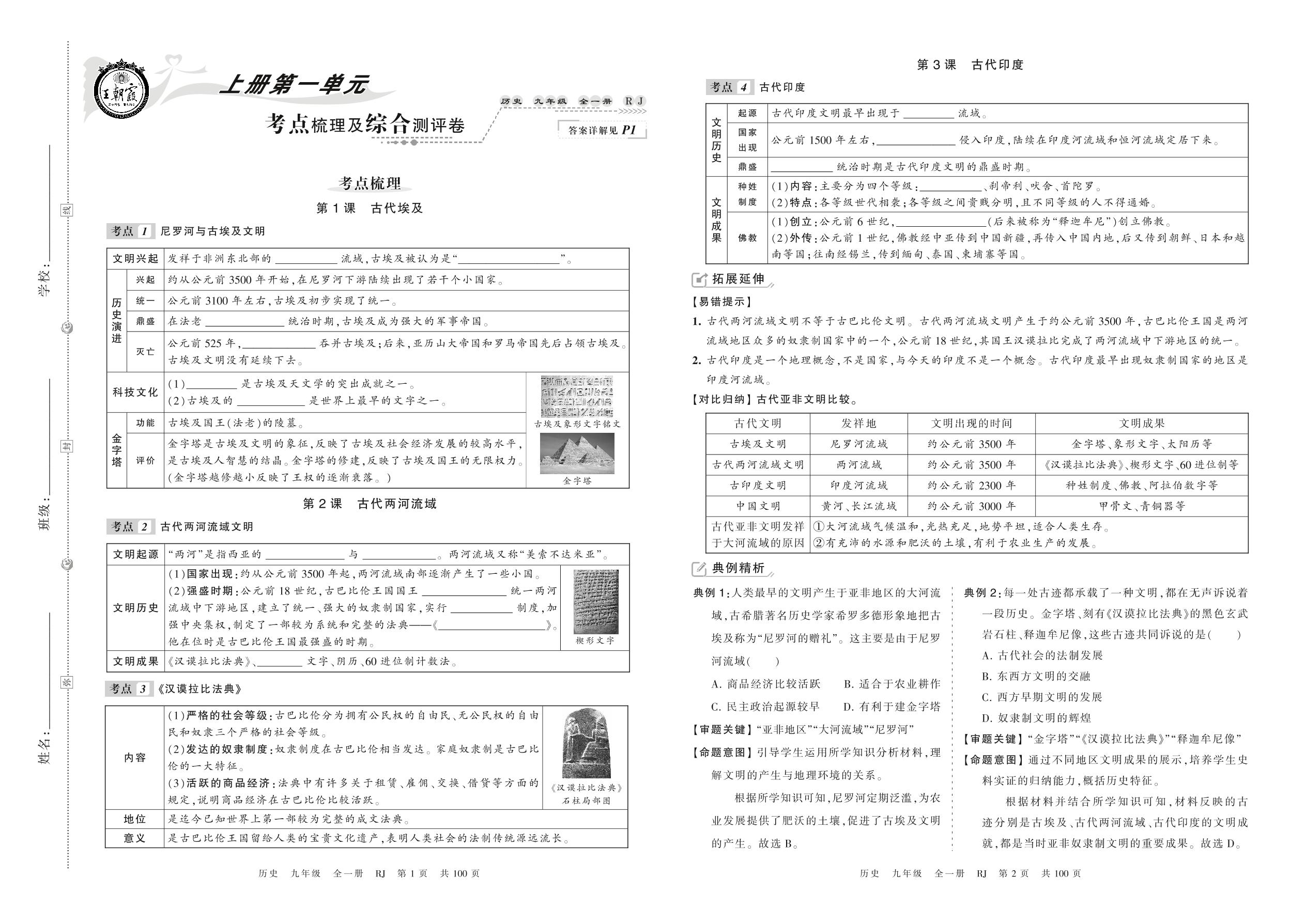 2021秋上册九年级历史人教版 第一单元 考点梳理及综合测评卷