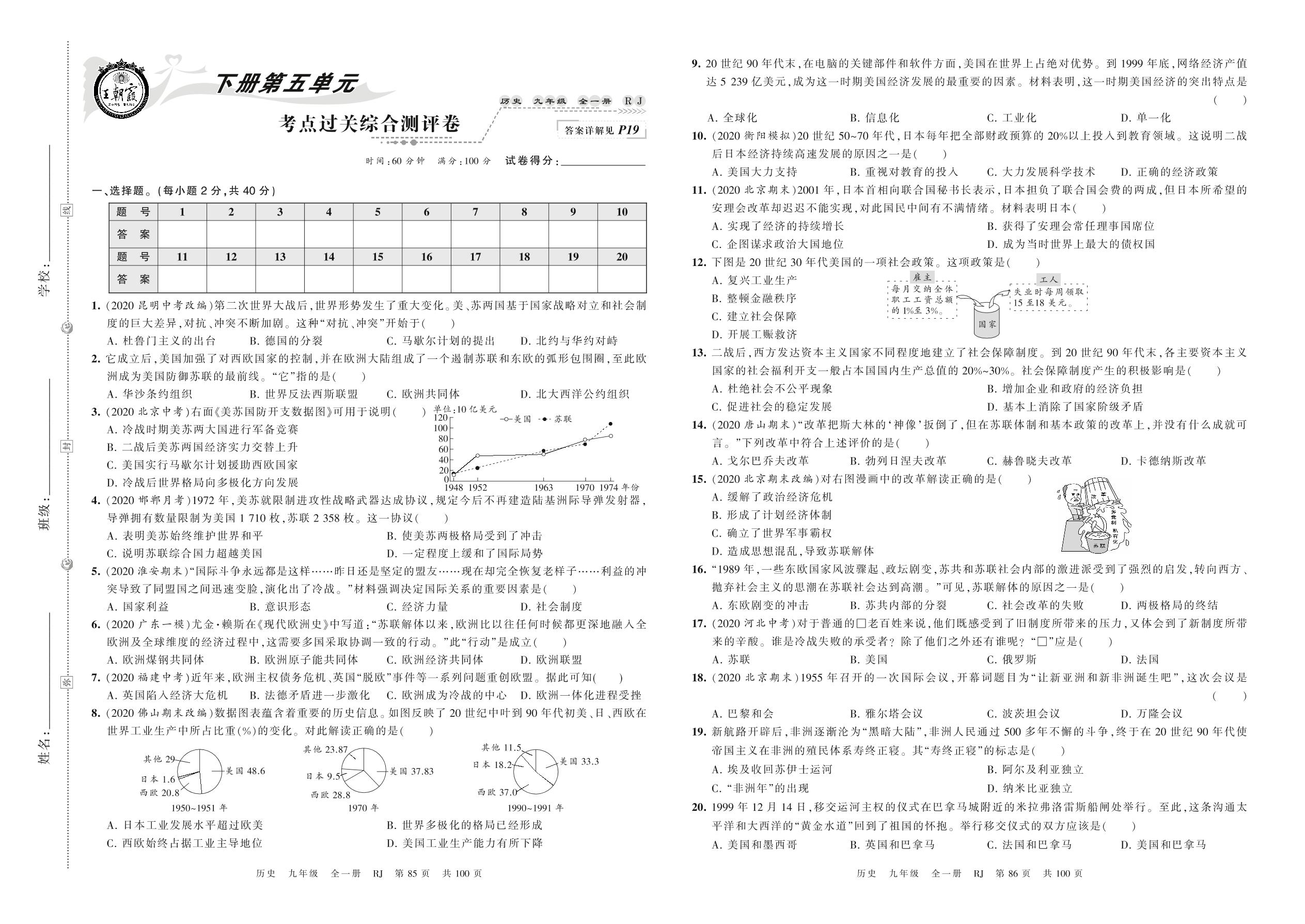 2022春下册九年级历史人教版 第五单元 考点过关综合测评卷
