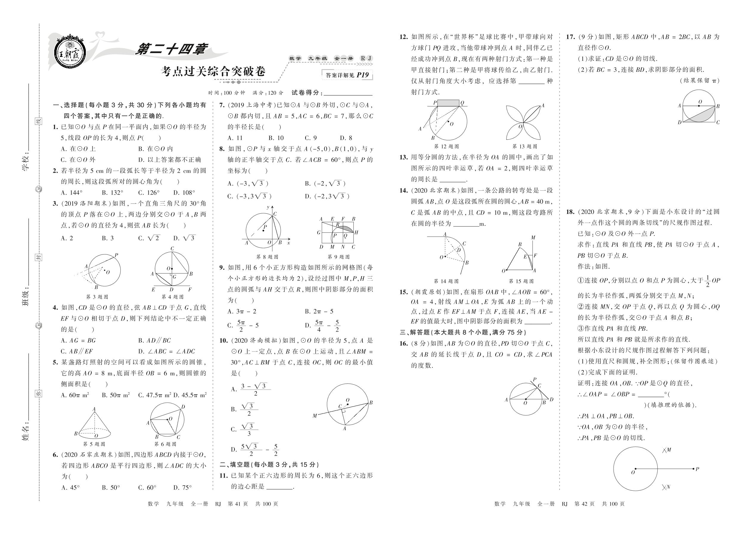 2021秋上册九年级数学人教版 第二十四章 考点过关综合突破卷
