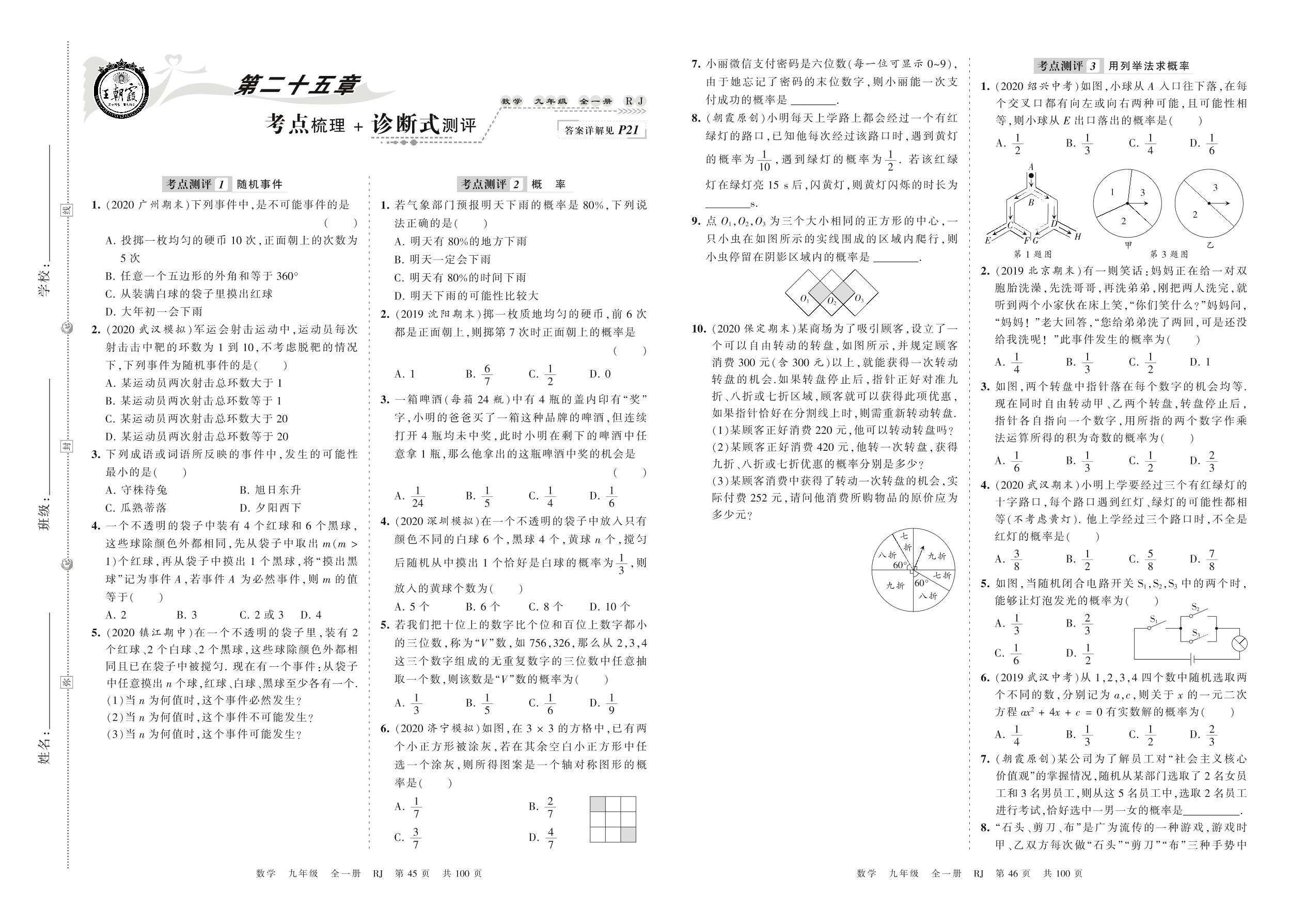 2021秋上册九年级数学人教版 第二十五章 考点梳理 + 诊断式测评