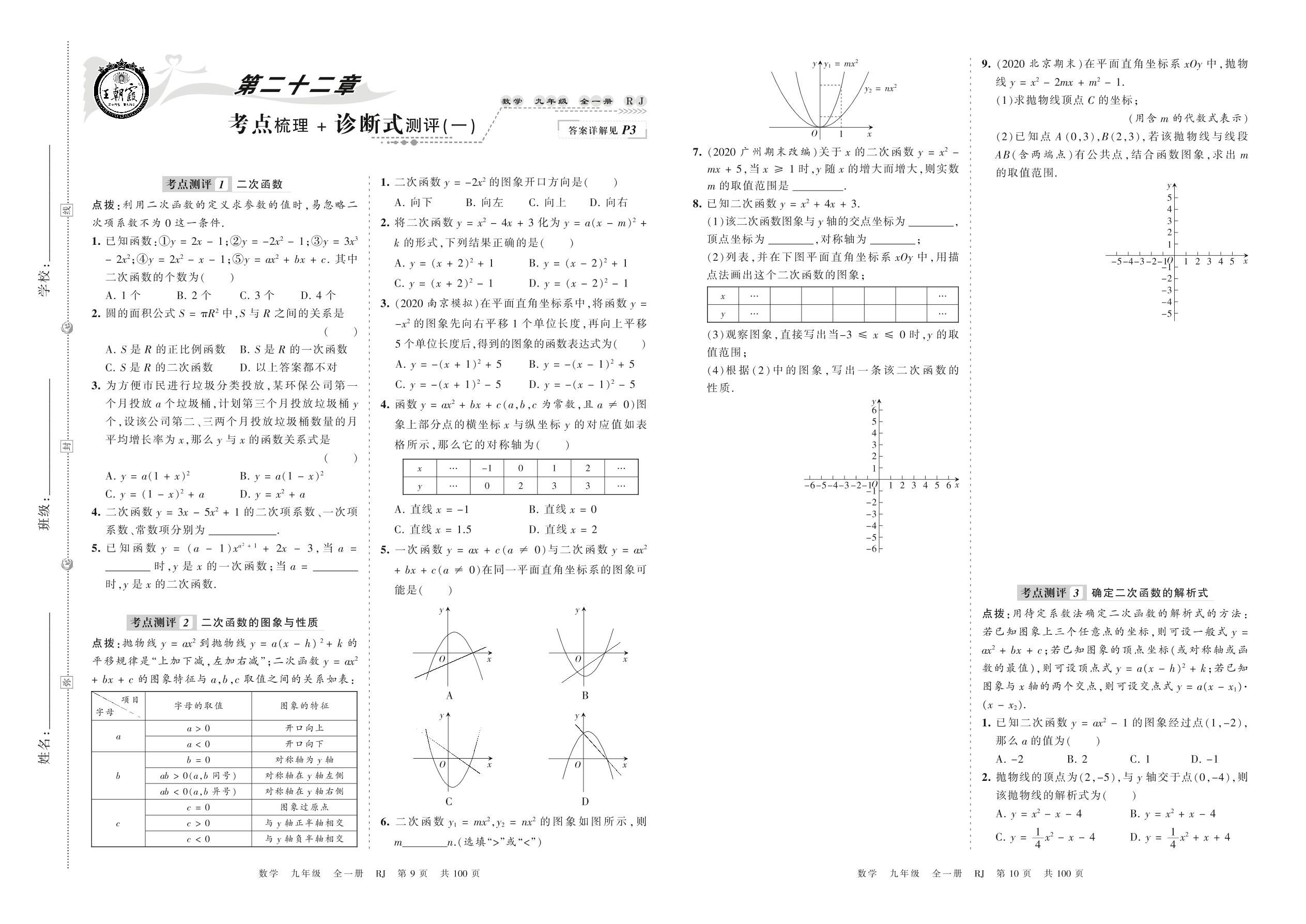2021秋上册九年级数学人教版 第二十二章 考点梳理 + 诊断式测评(一)