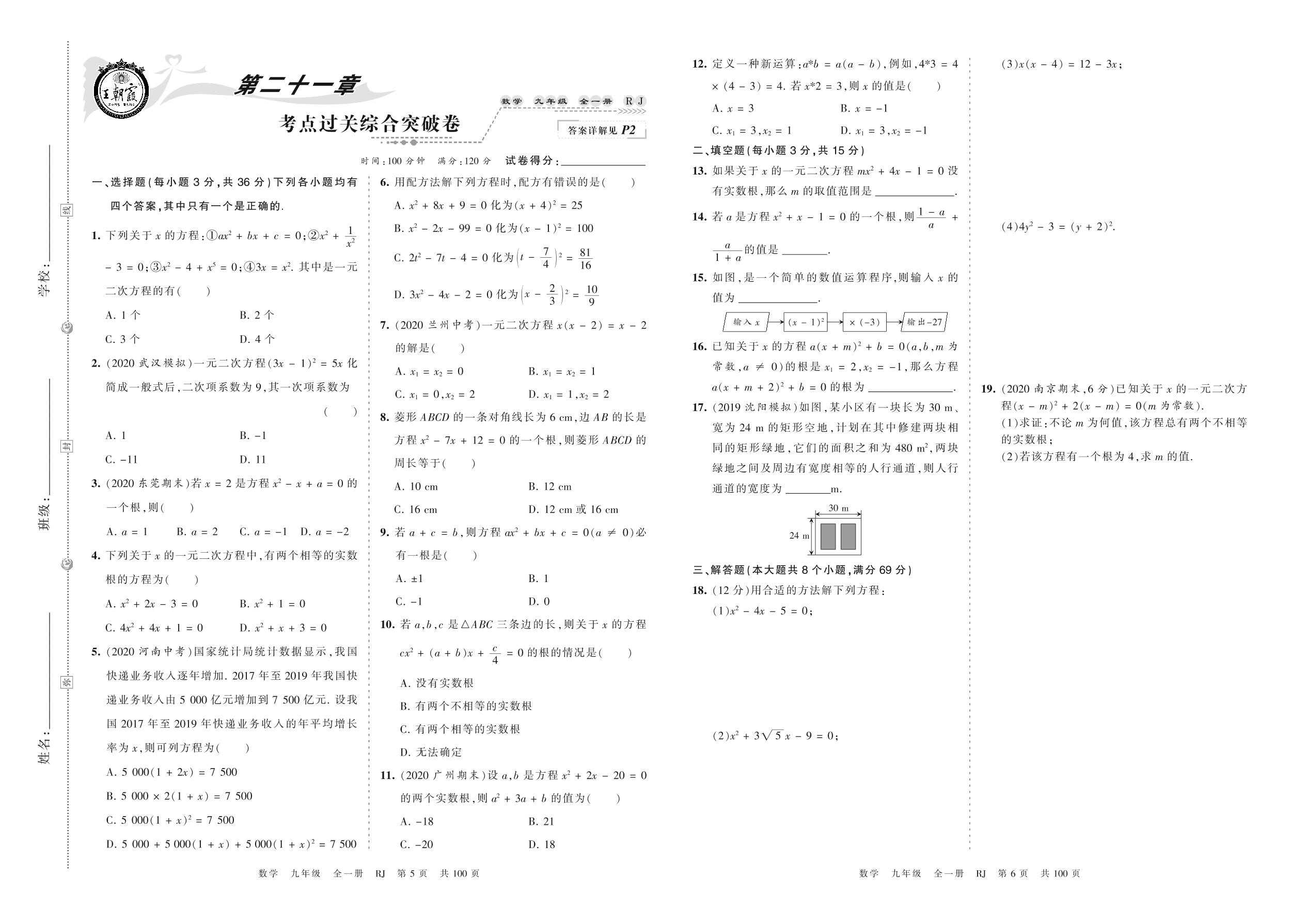 2021秋上册九年级数学人教版 第二十一章 考点过关综合突破卷