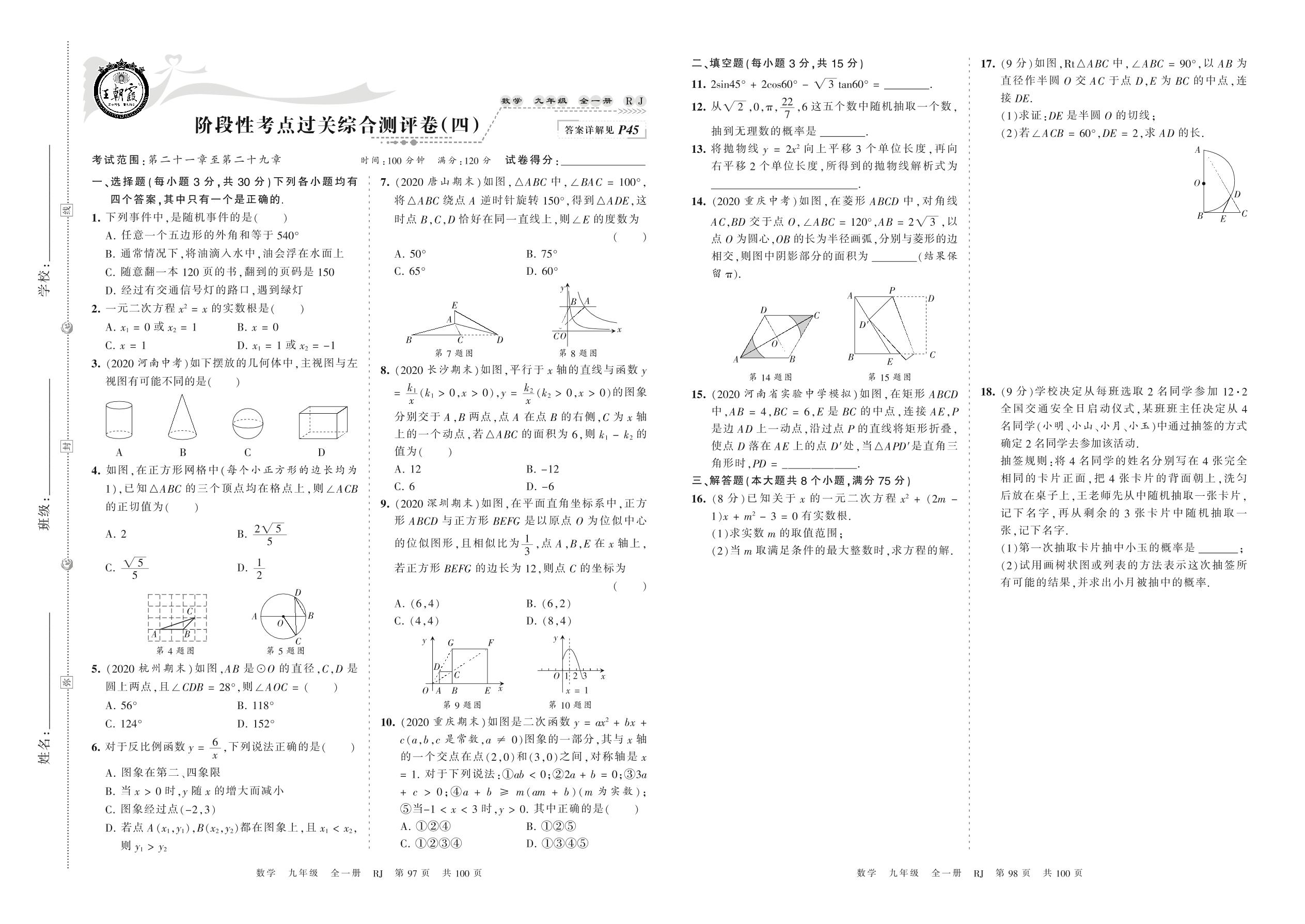 2022春下册九年级数学人教版 阶段性考点过关综合测评卷(四)