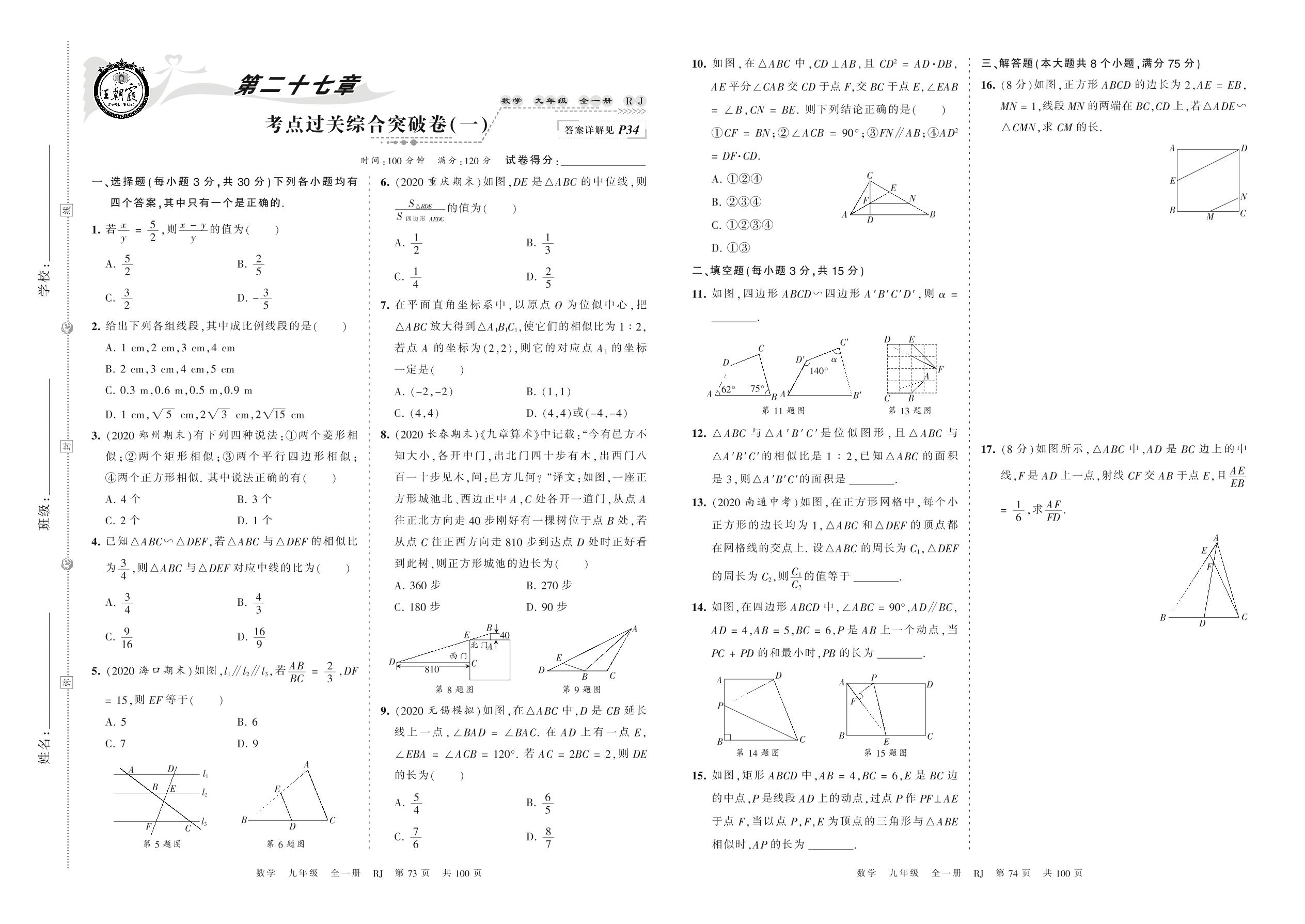 2022春下册九年级数学人教版 第二十七章 考点过关综合突破卷(一)