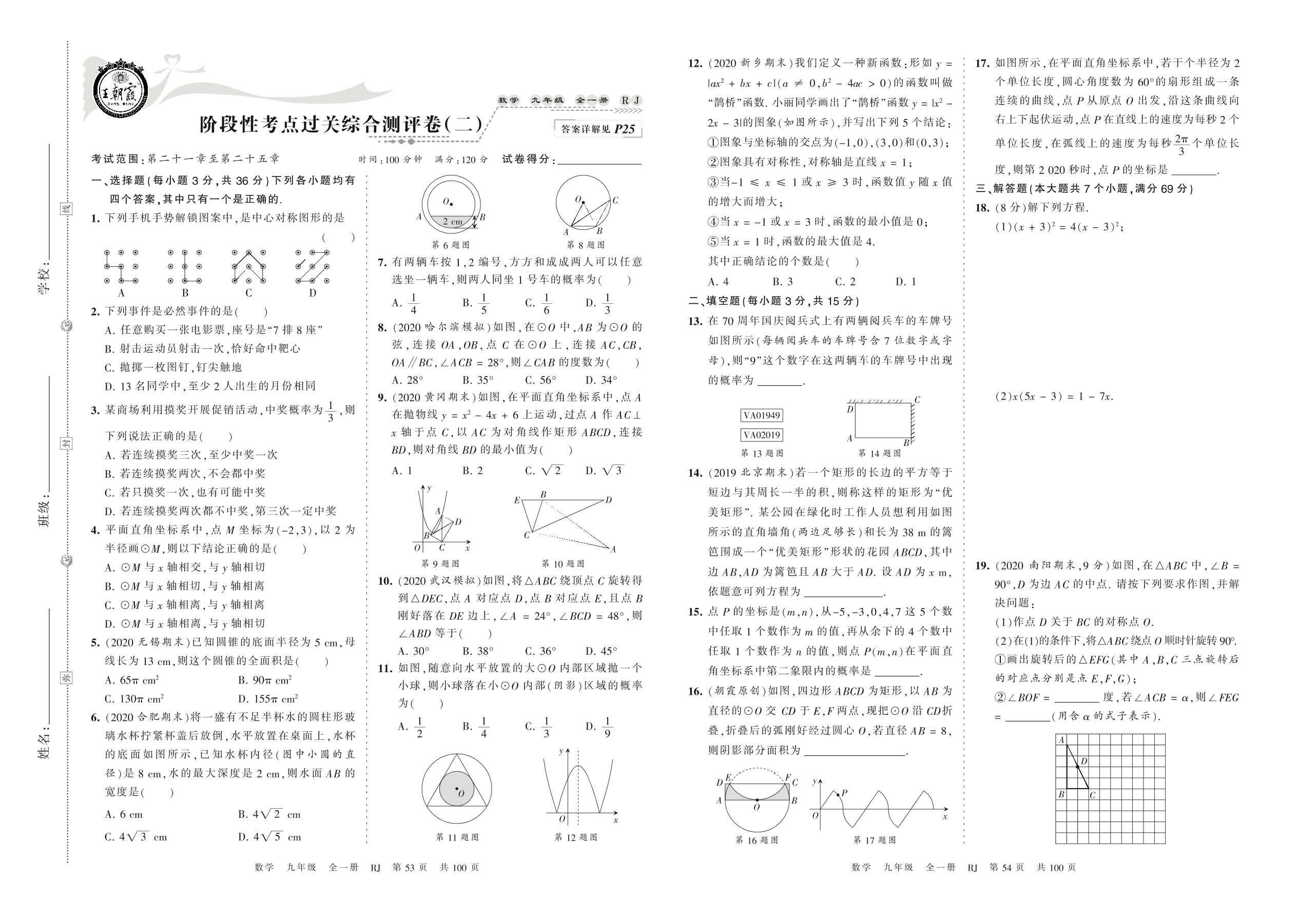 2021秋上册九年级数学人教版 阶段性考点过关综合测评卷(二)