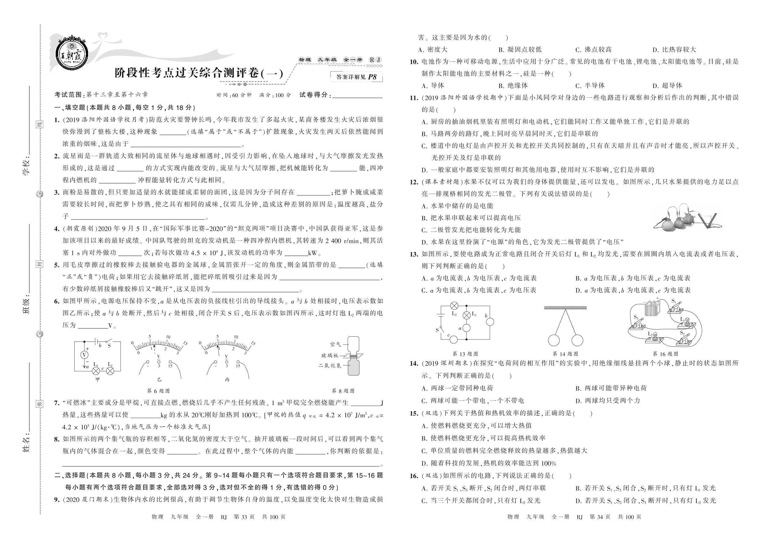九年级物理人教版全一册月考卷
