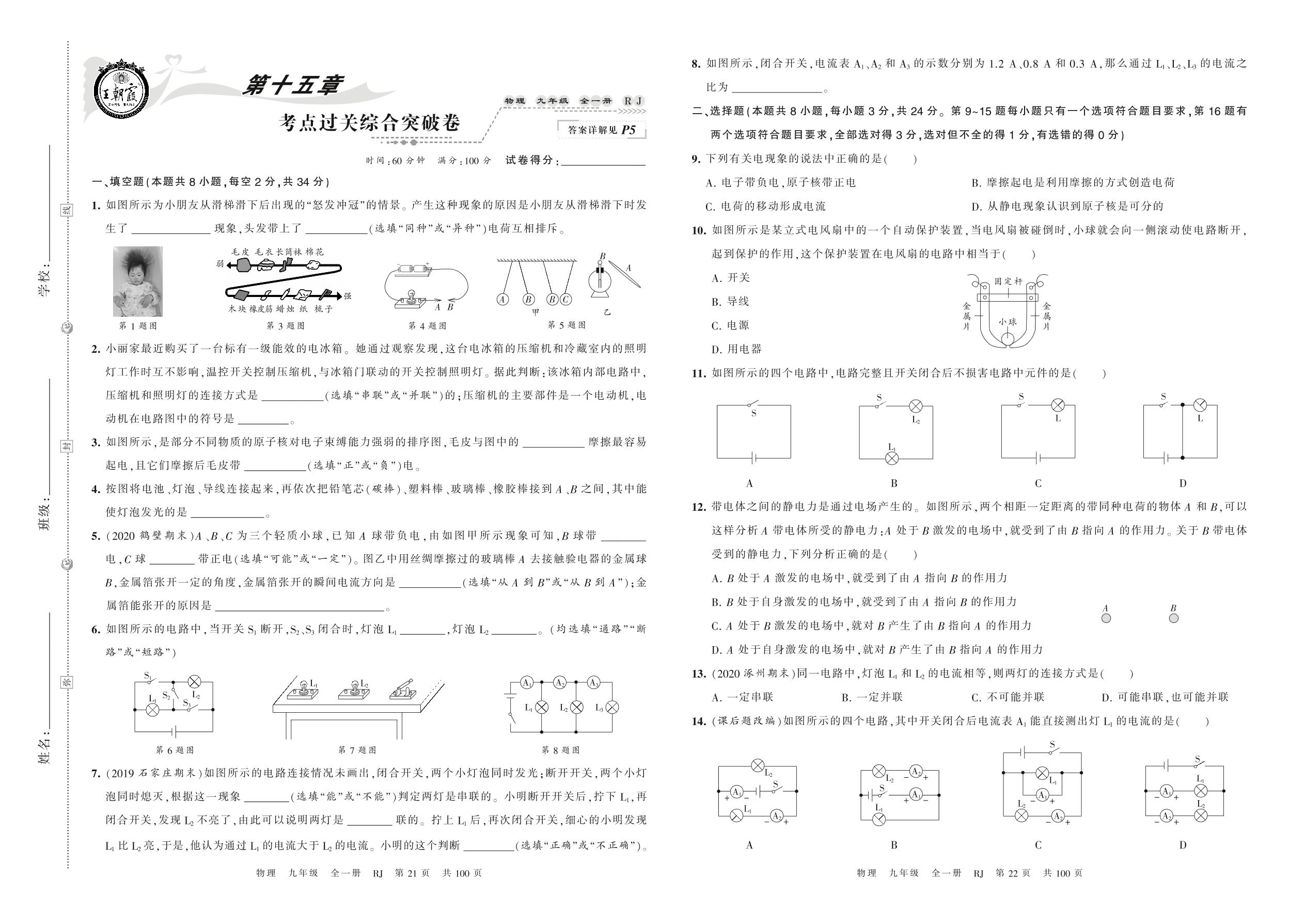 2020-2021学年九年级物理人教版 第十五章 考点过关综合突破卷