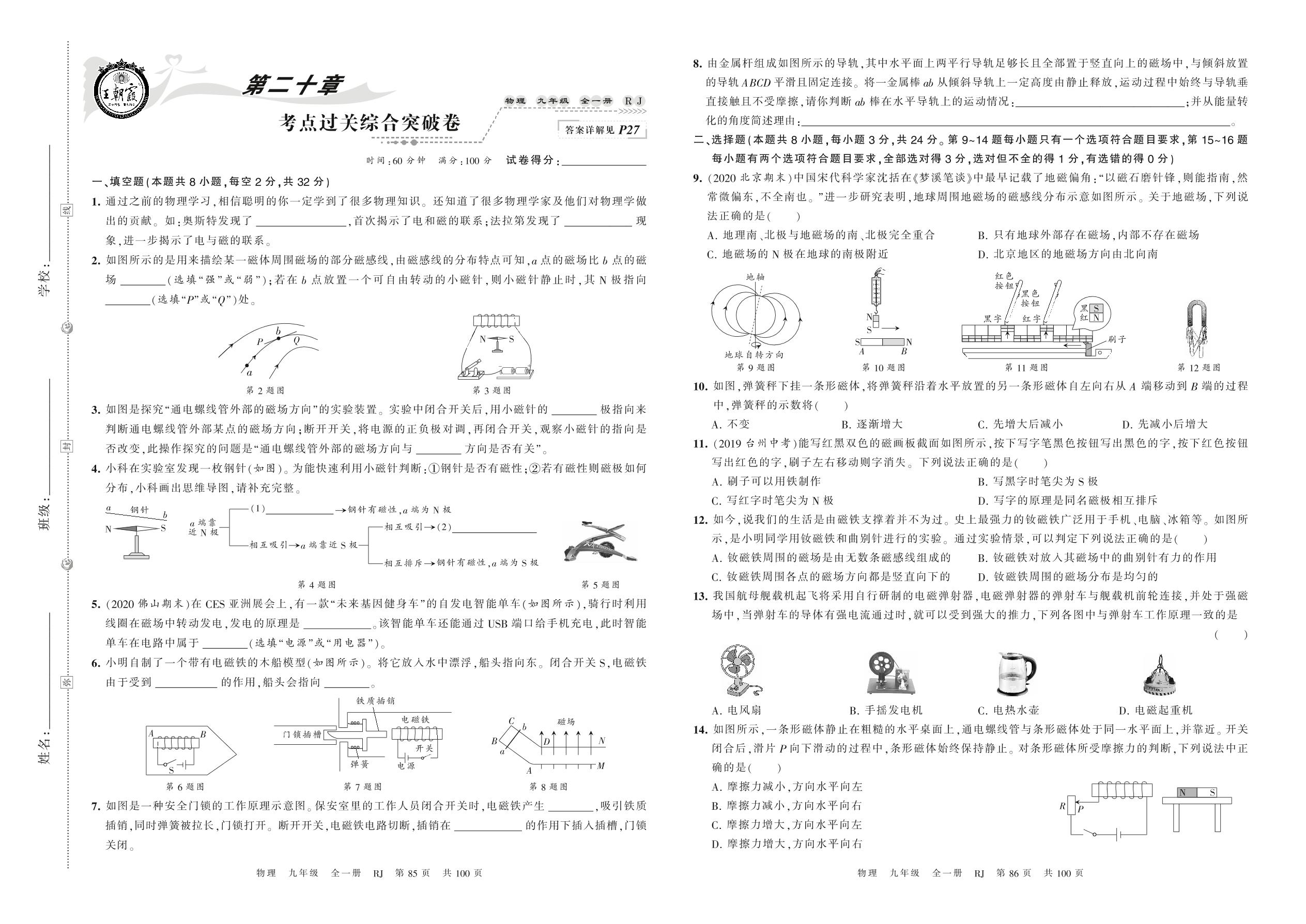 2020-2021学年九年级物理人教版 第二十章 考点过关综合突破卷