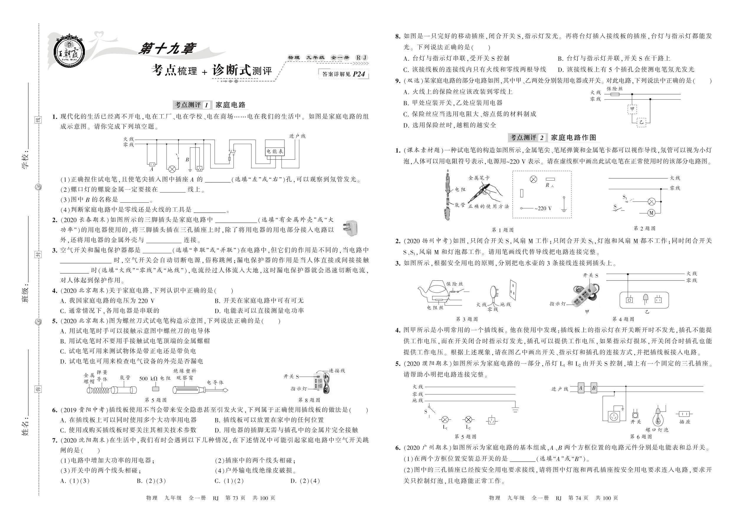 2020-2021学年九年级物理人教版 第十九章 考点梳理 + 诊断式测评