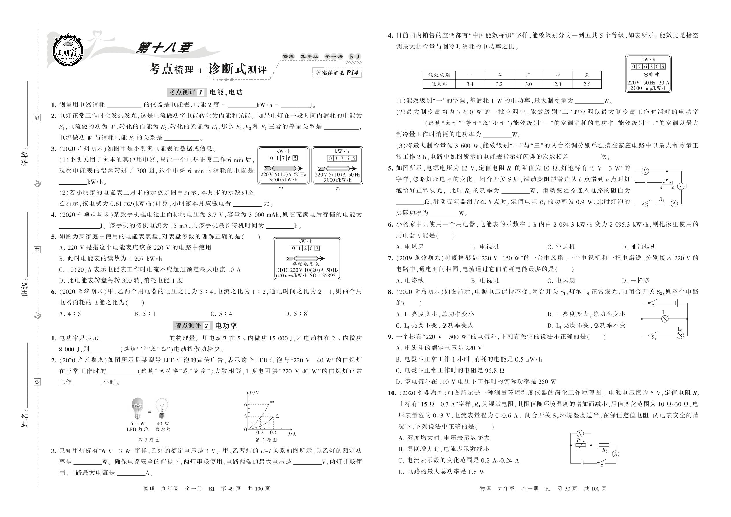 2020-2021学年九年级物理人教版 第十八章 考点梳理 + 诊断式测评
