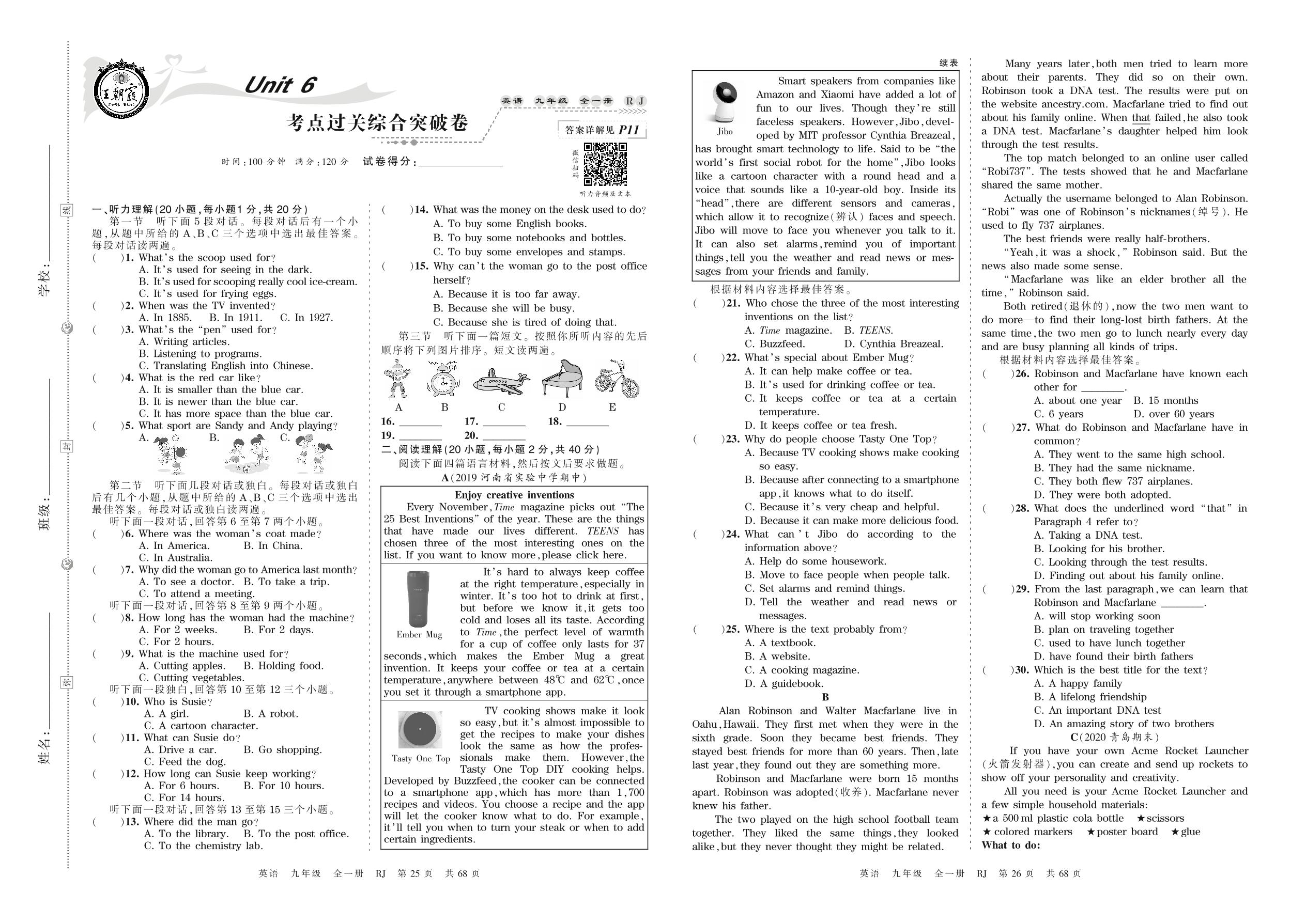 2021-2022学年九年级英语人教版 Unit 6 考点过关综合突破卷