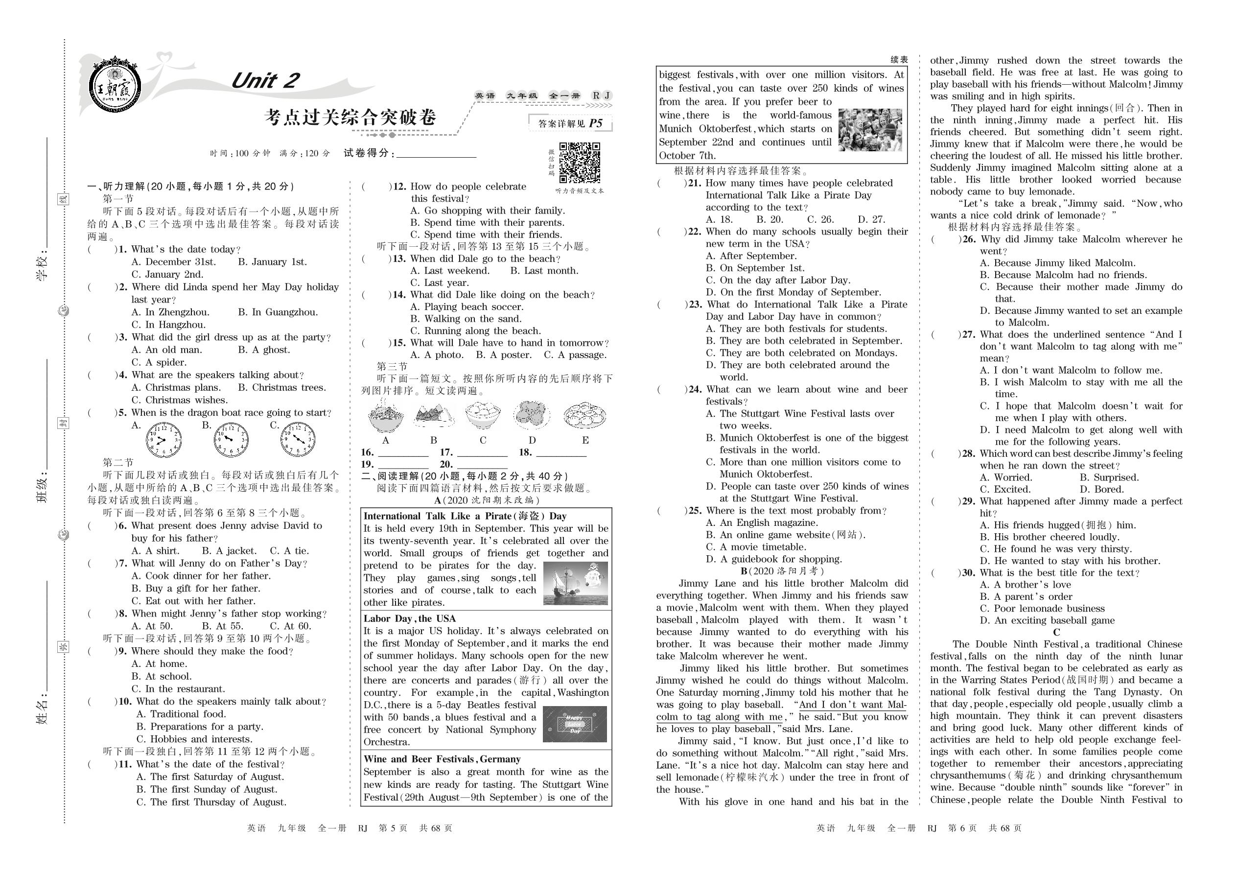 2021-2022学年九年级英语人教版 Unit 2 考点过关综合突破卷
