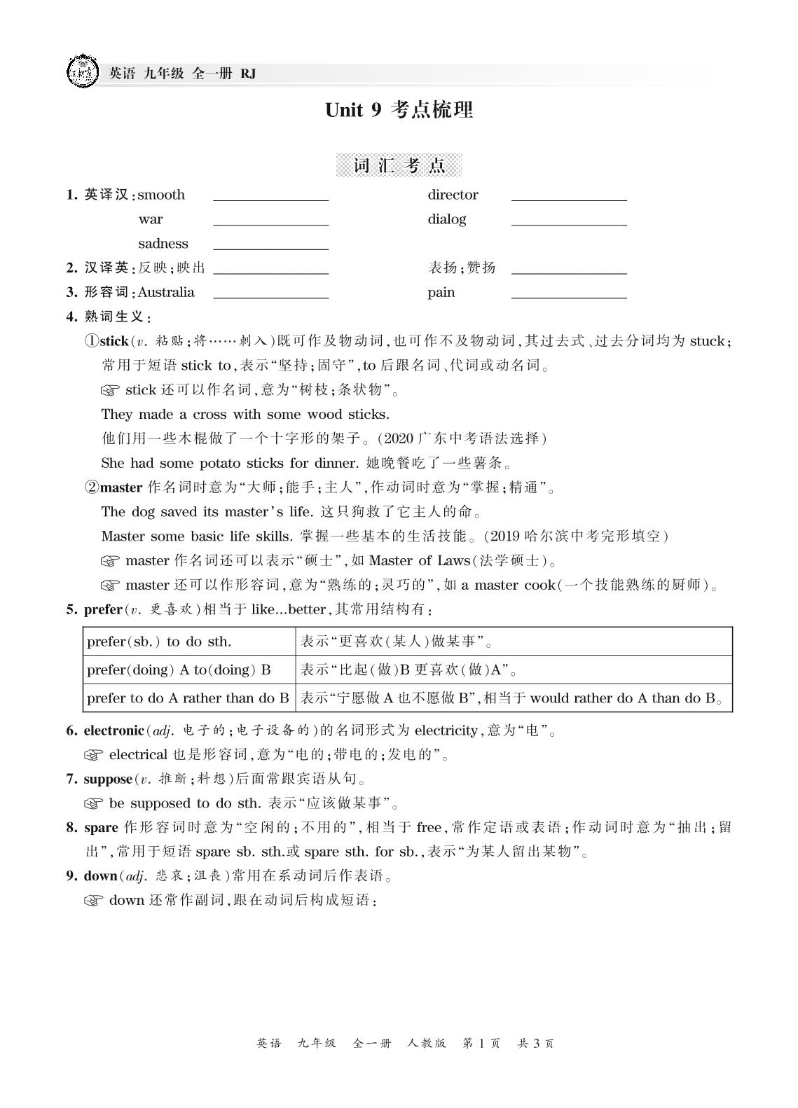 2021-2022学年九年级英语人教版 Unit 9 考点梳理