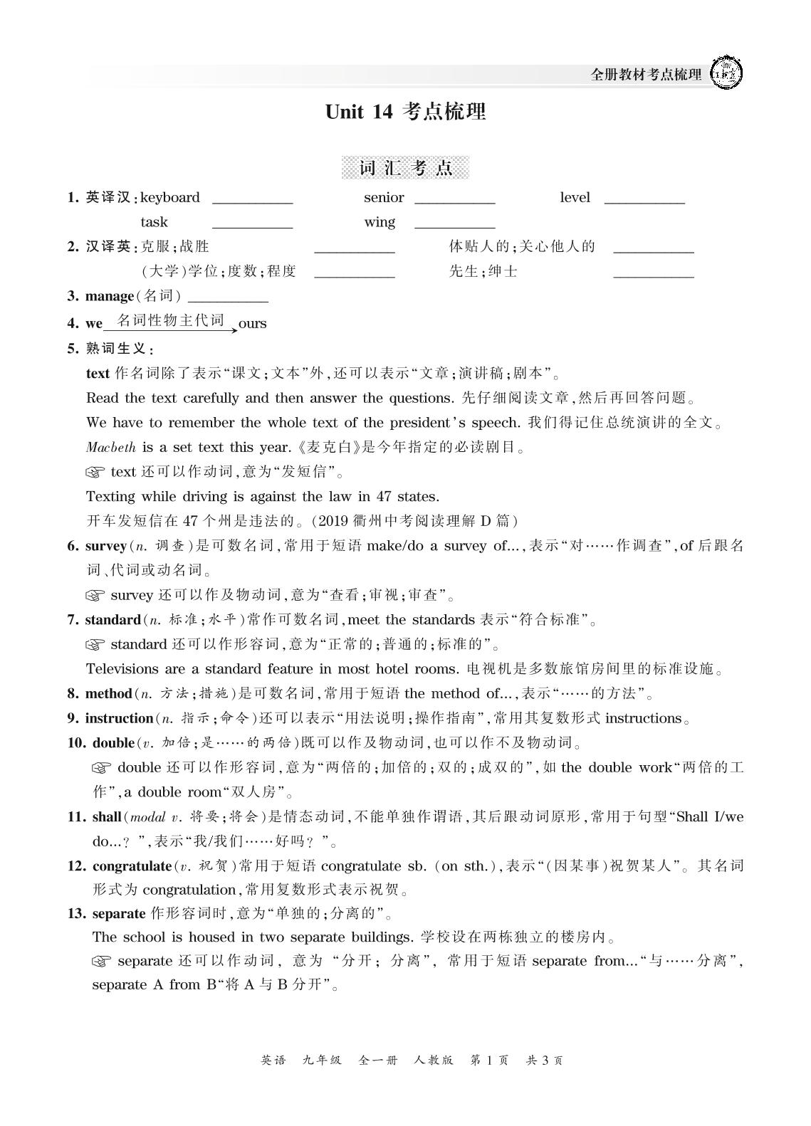 2021-2022学年九年级英语人教版 Unit 14 考点梳理