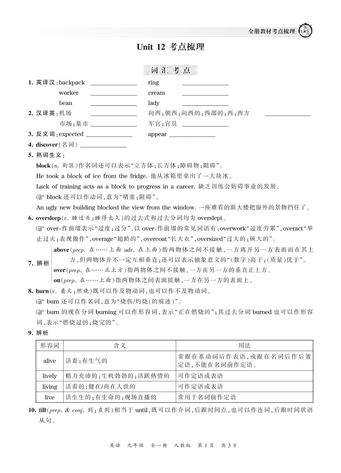 2021-2022学年九年级英语人教版 Unit 12 考点梳理