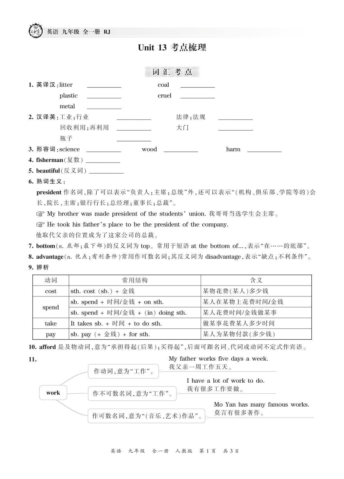 2021-2022学年九年级英语人教版 Unit 13 考点梳理