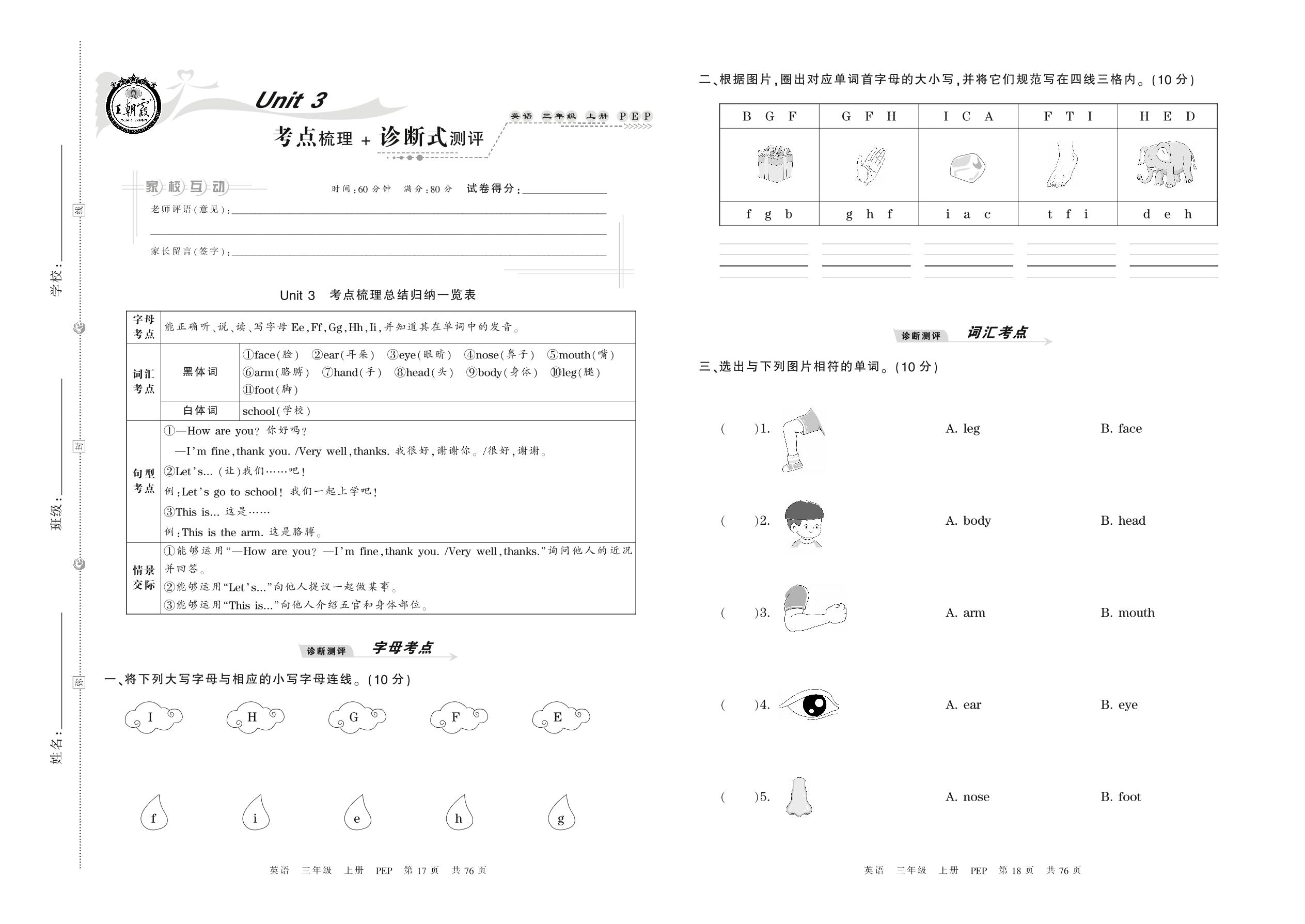 2021上册三年级英语人教PEP版 Unit 3 考点梳理 + 诊断式测评