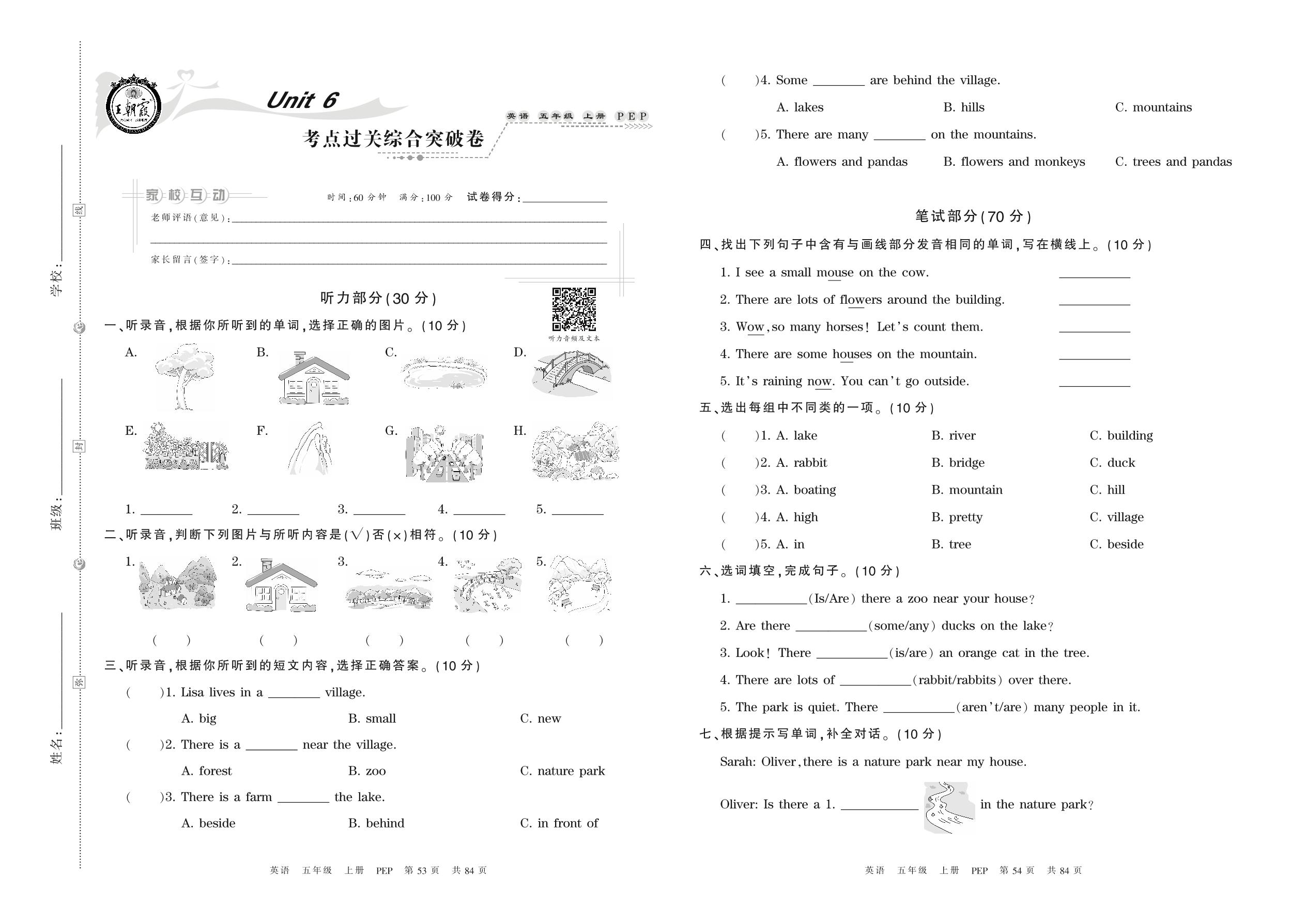 2021上册五年级英语人教PEP版 Unit 6 考点过关综合突破卷