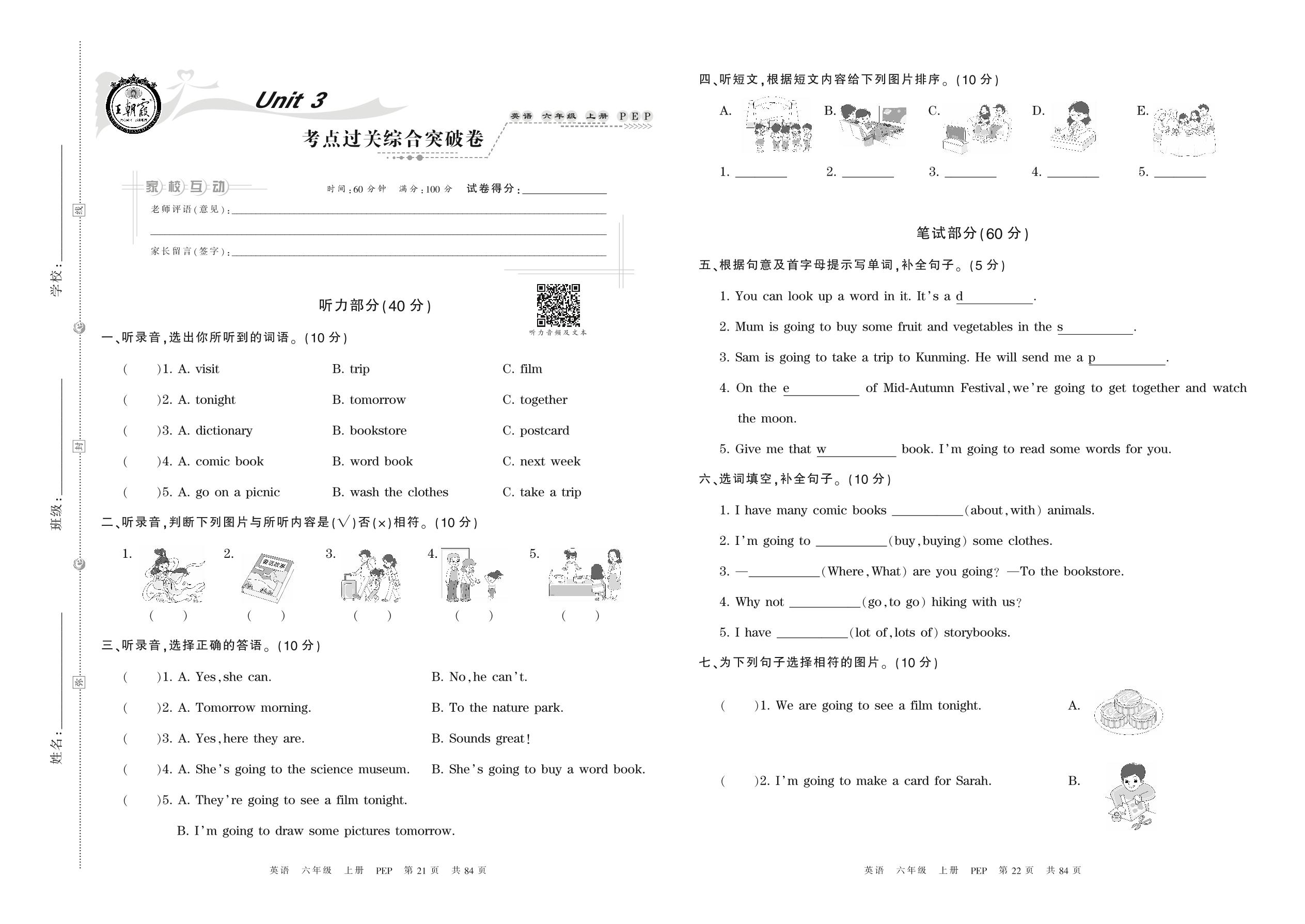 2021上册六年级英语人教PEP版 Unit 3 考点过关综合突破卷