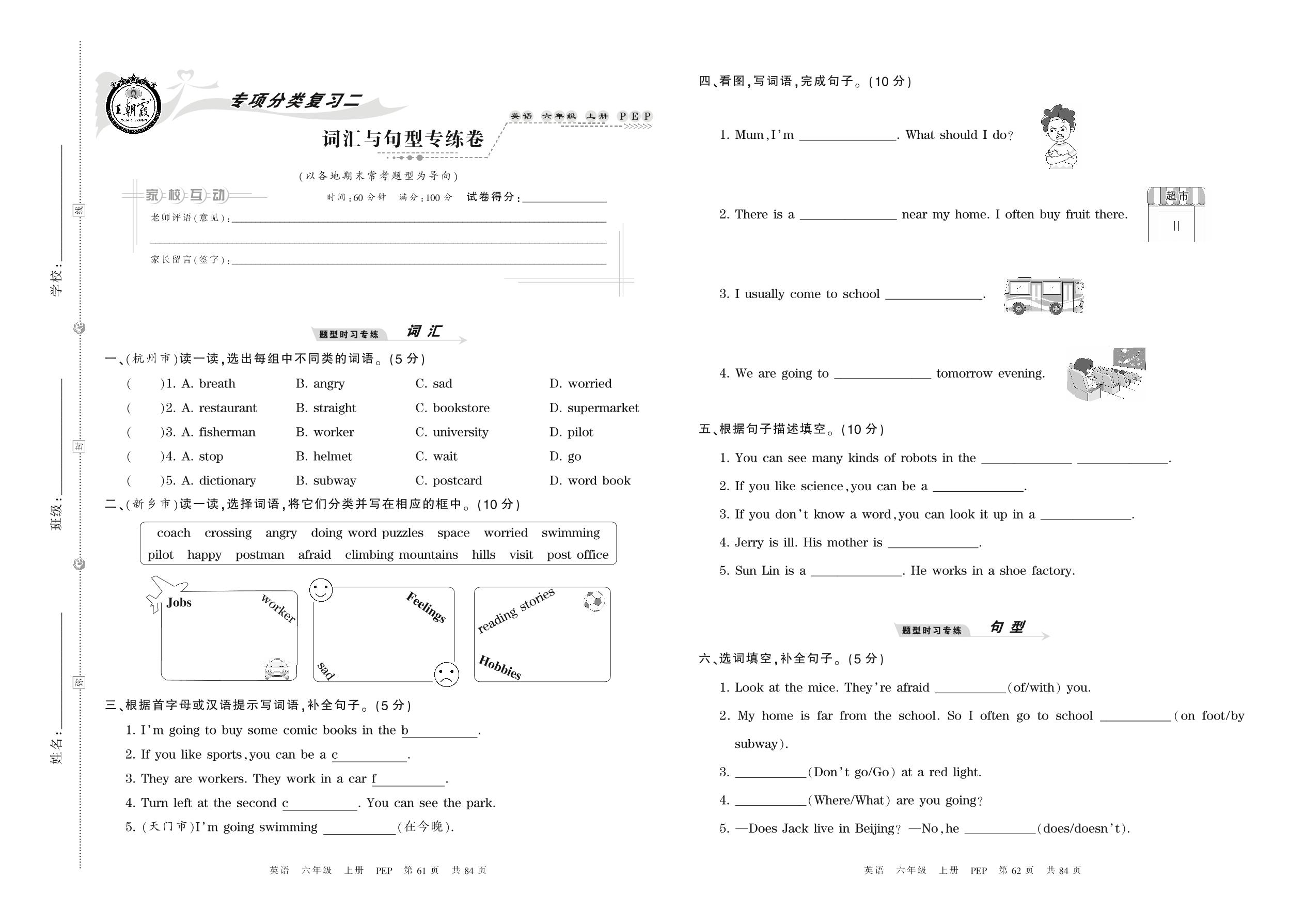 2021上册六年级英语人教PEP版 词汇与句型专练卷