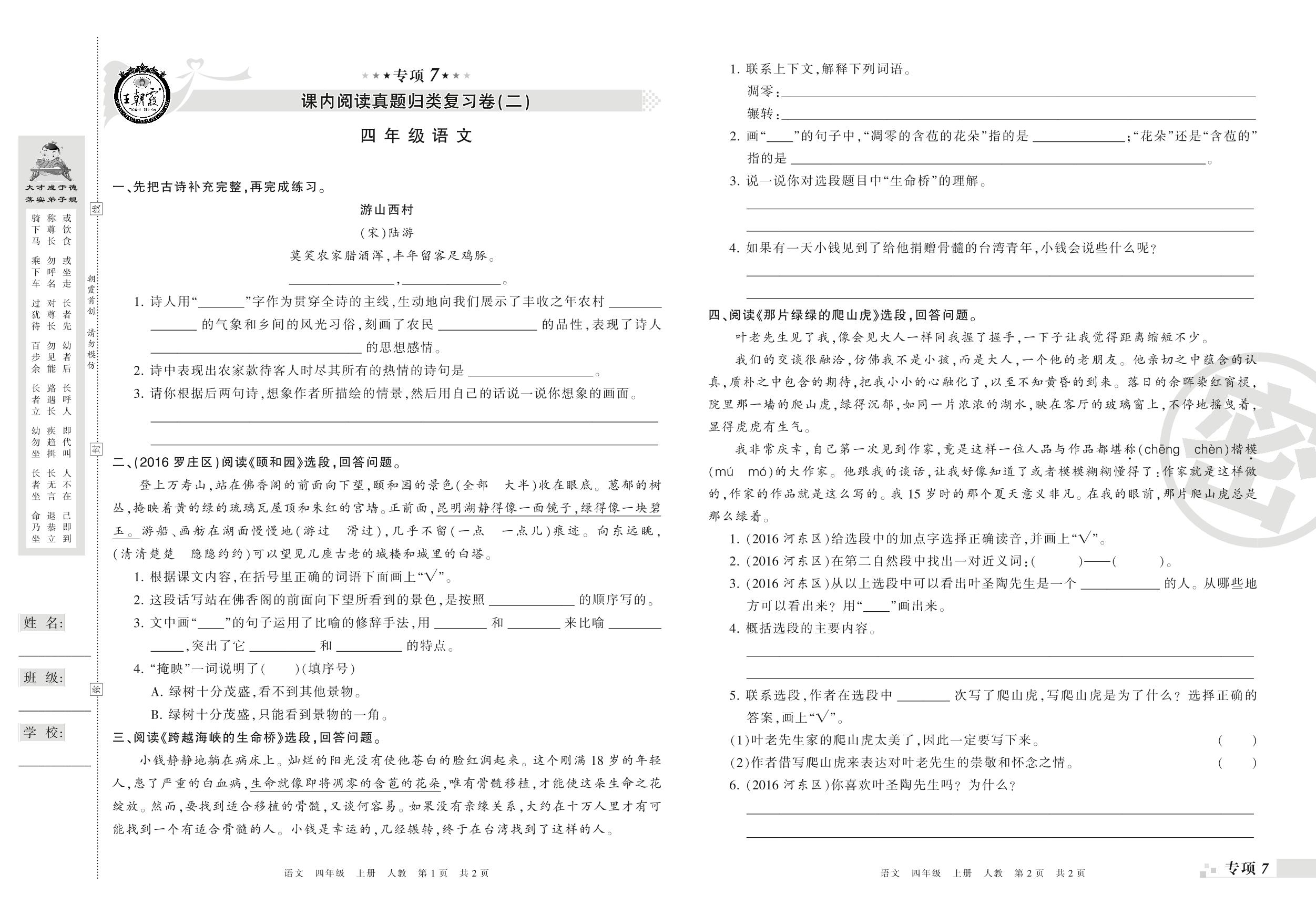四年级语文人教版上册专项卷