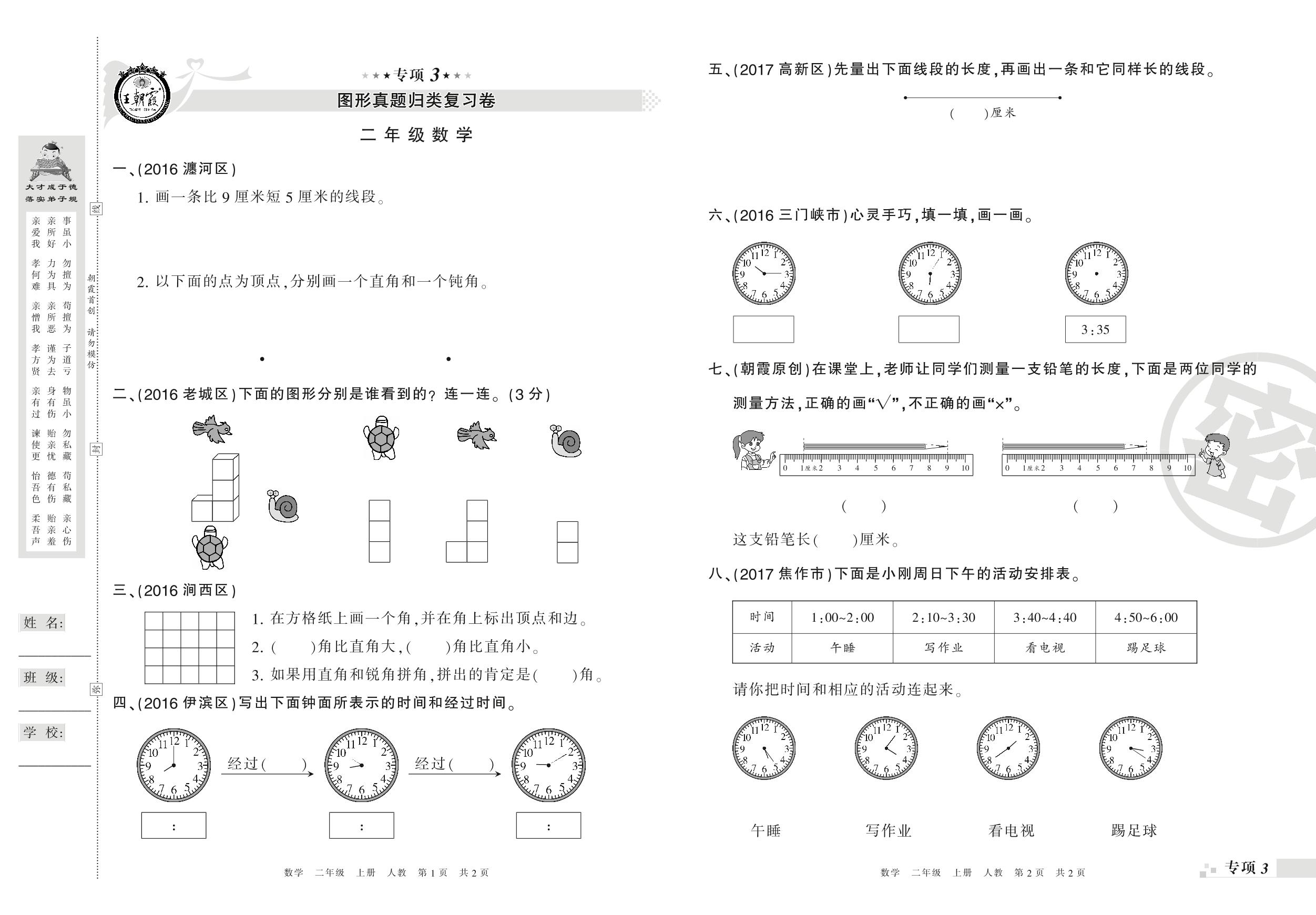 王朝霞期末专项卷——图形、解决问题真题归类复习卷二年级上册数学(人教版)【0】