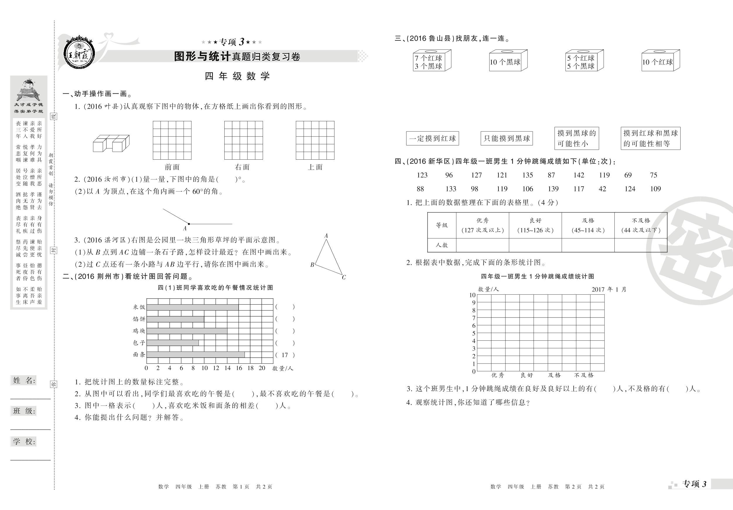 王朝霞期末专项卷——图形与统计、解决问题真题归类复习卷四年级上册数学(苏教版)【0】