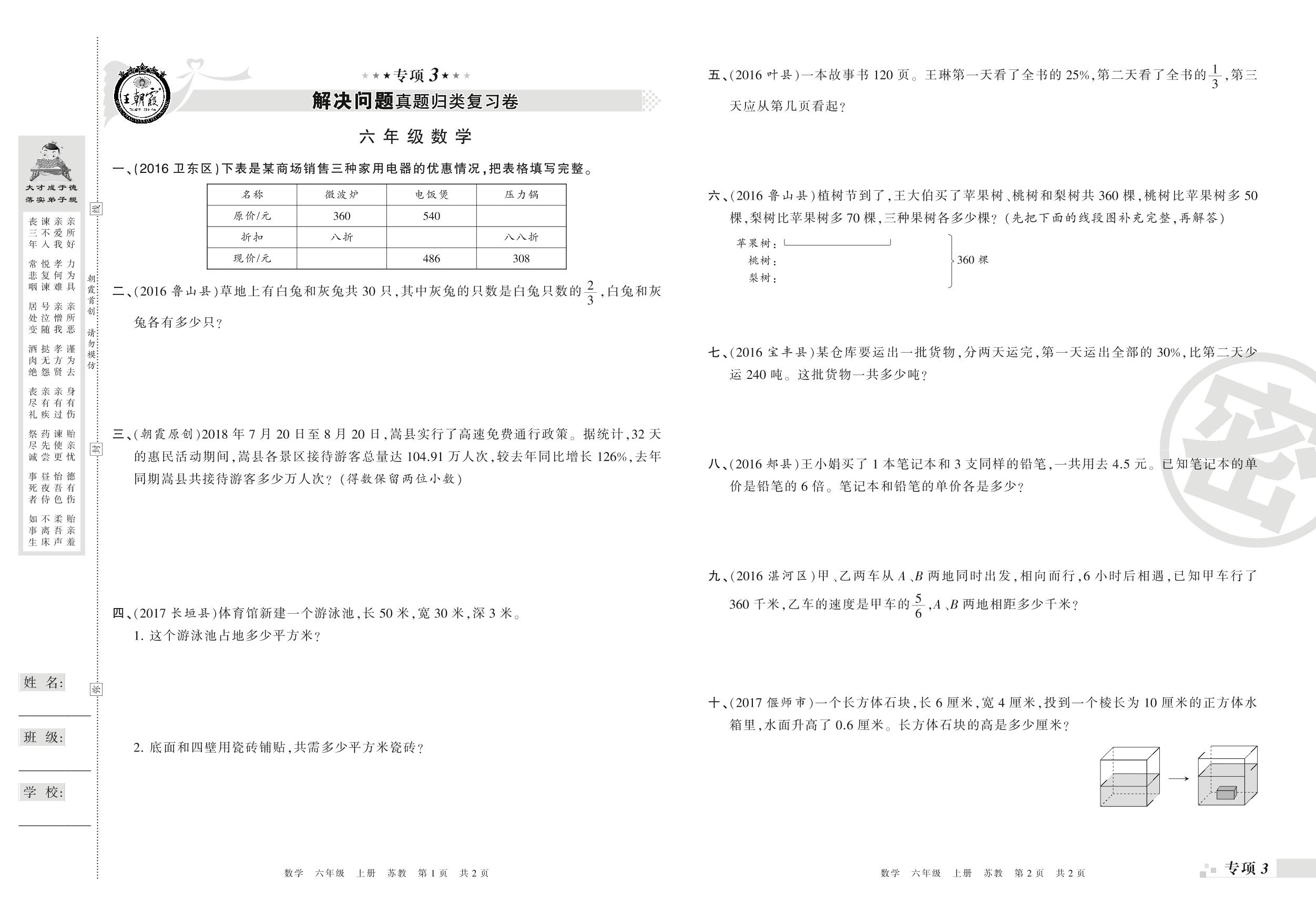 王朝霞期末专项卷——解决问题、易错题真题归类复习卷六年级上册数学(苏教版)【0】