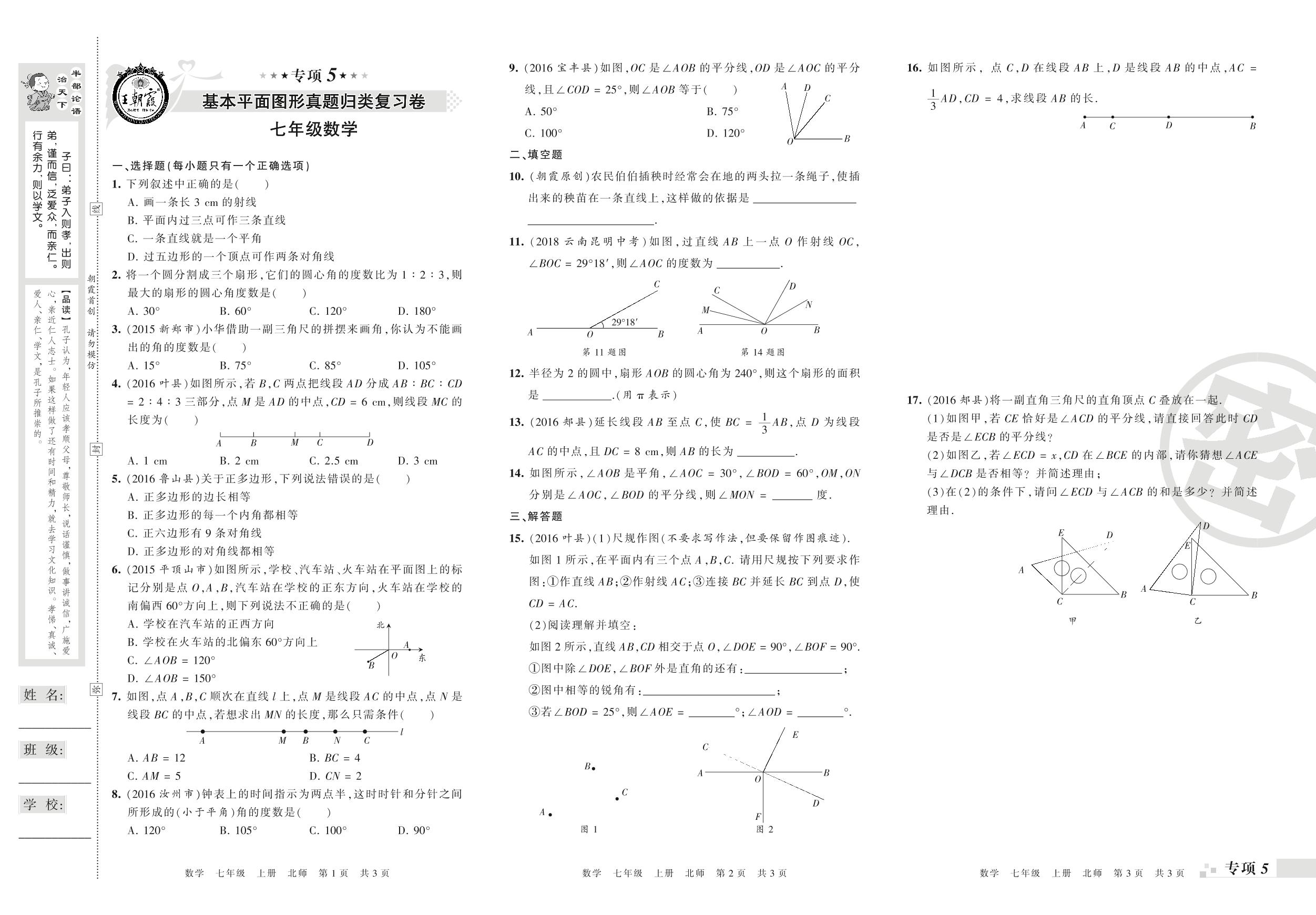 七年级数学北师版上册专项卷