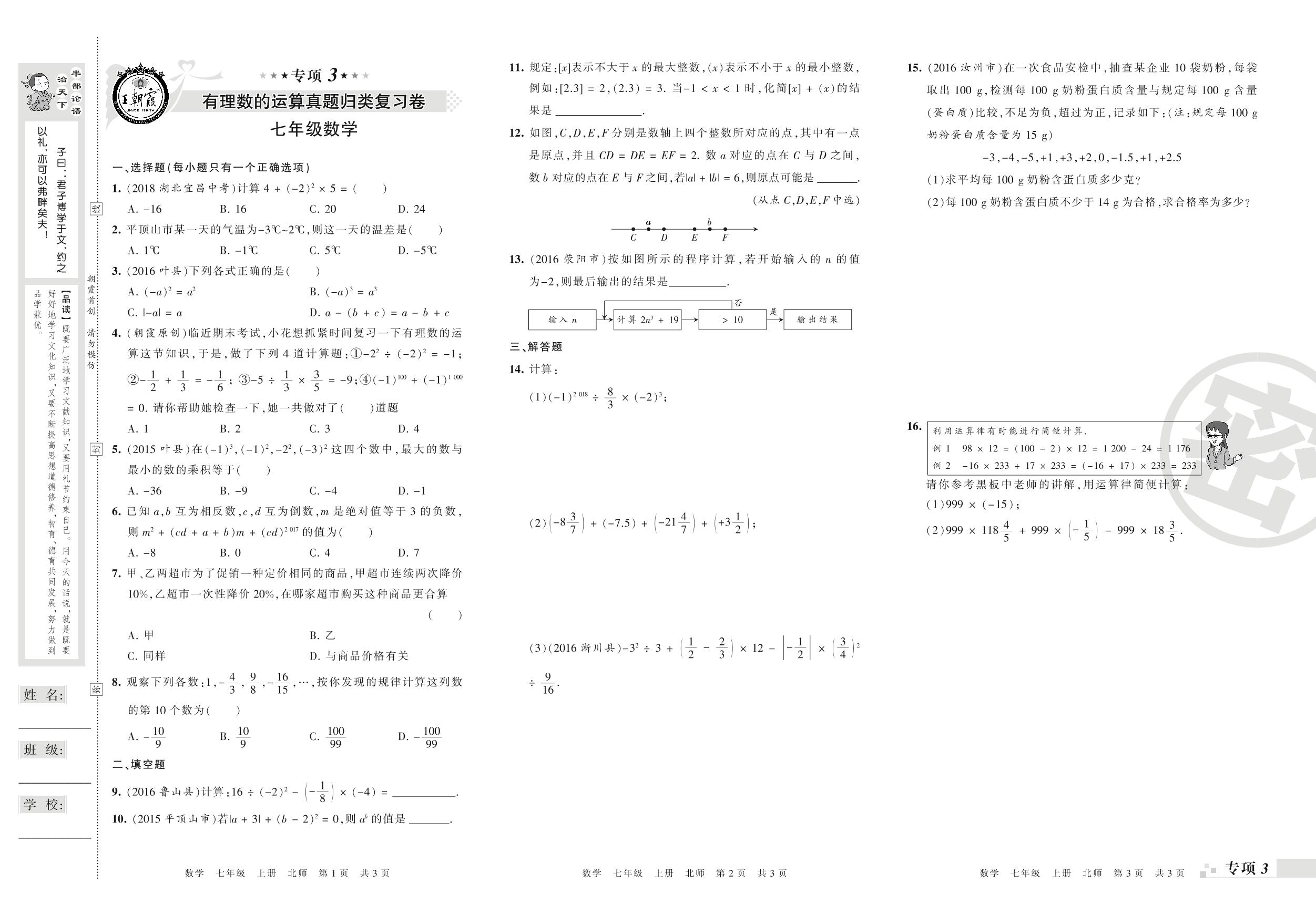王朝霞期末专项卷——有理数的运算、整式及其加减真题归类复习卷七年级上册数学(北师版)【0】