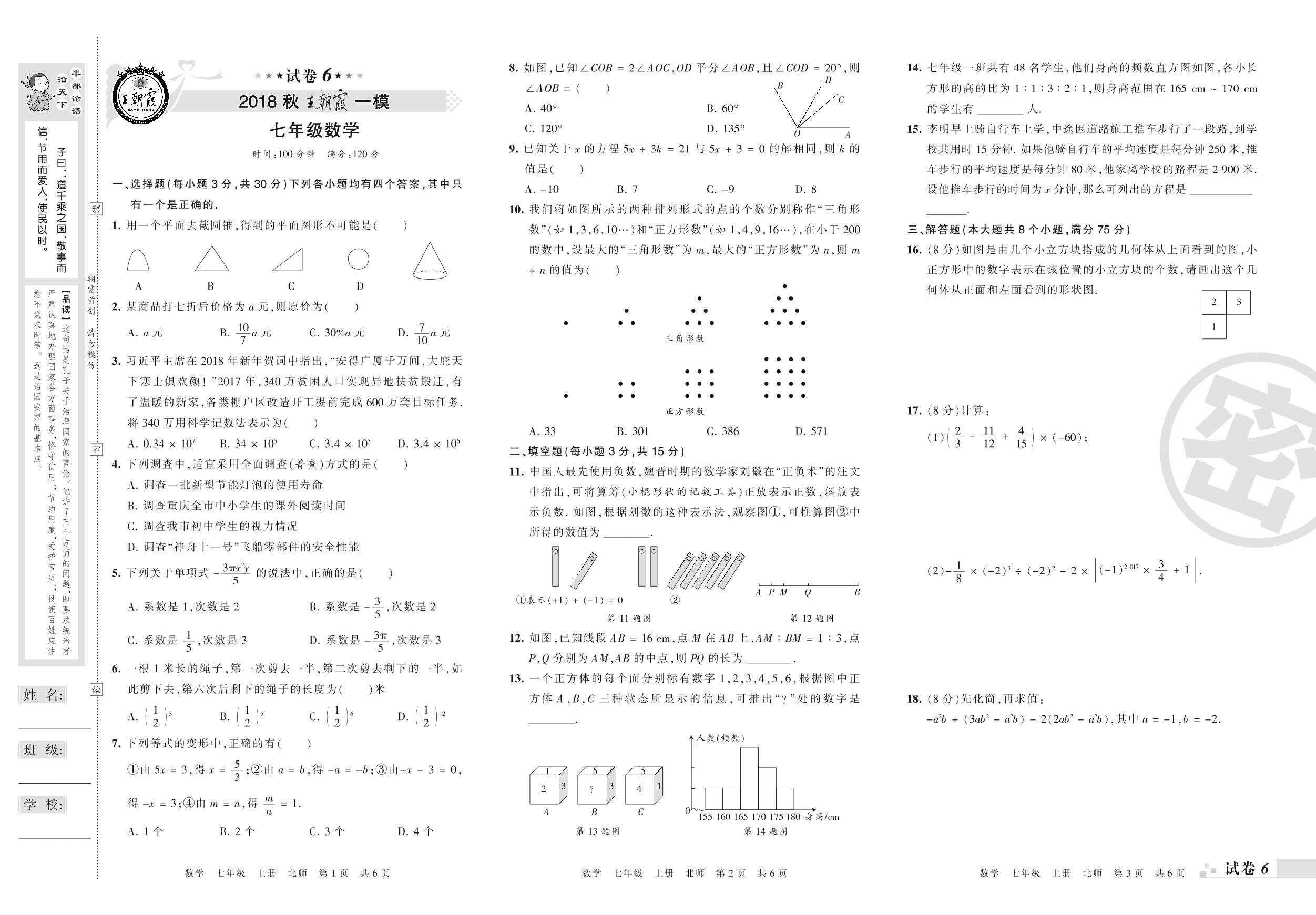 七年级数学北师版上册期末卷