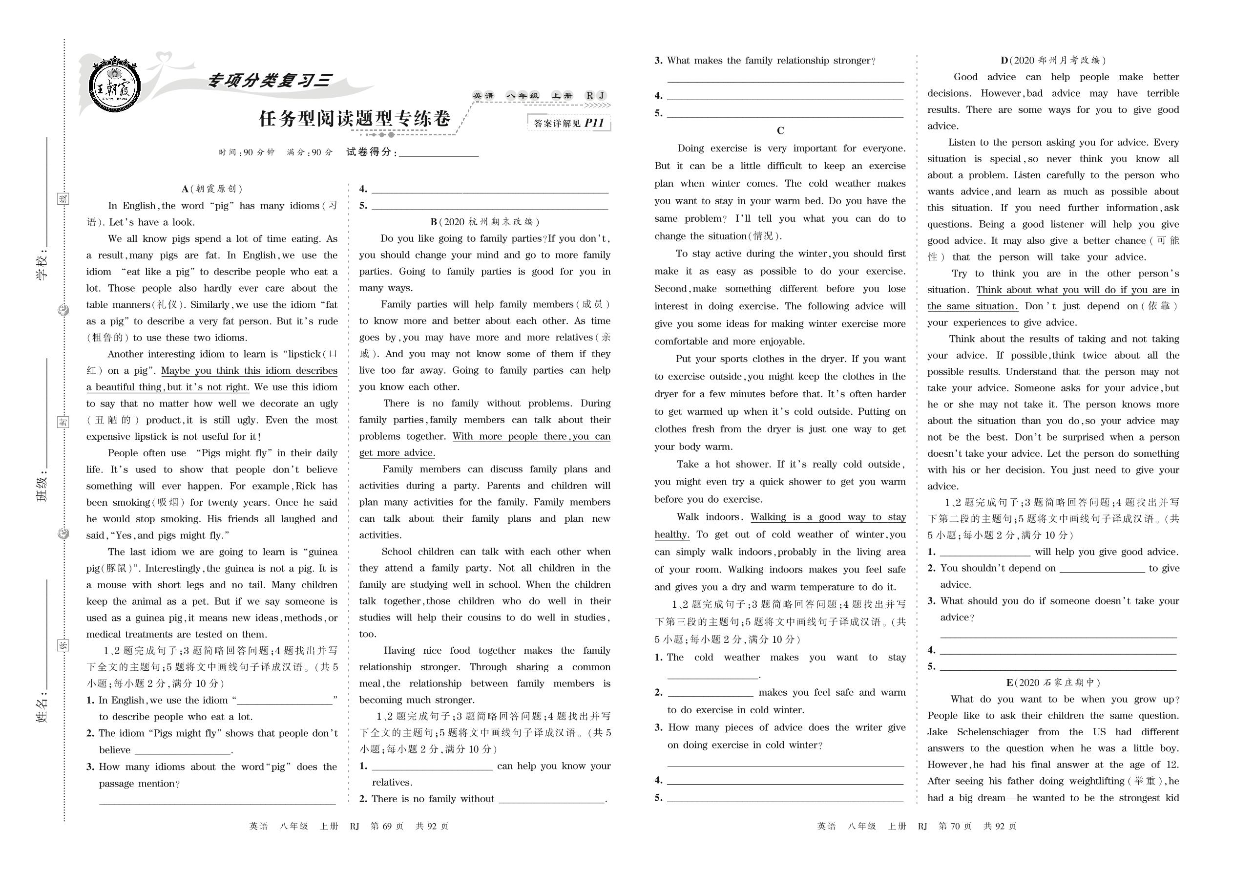 2021上册八年级英语人教版 任务型阅读题型专练卷