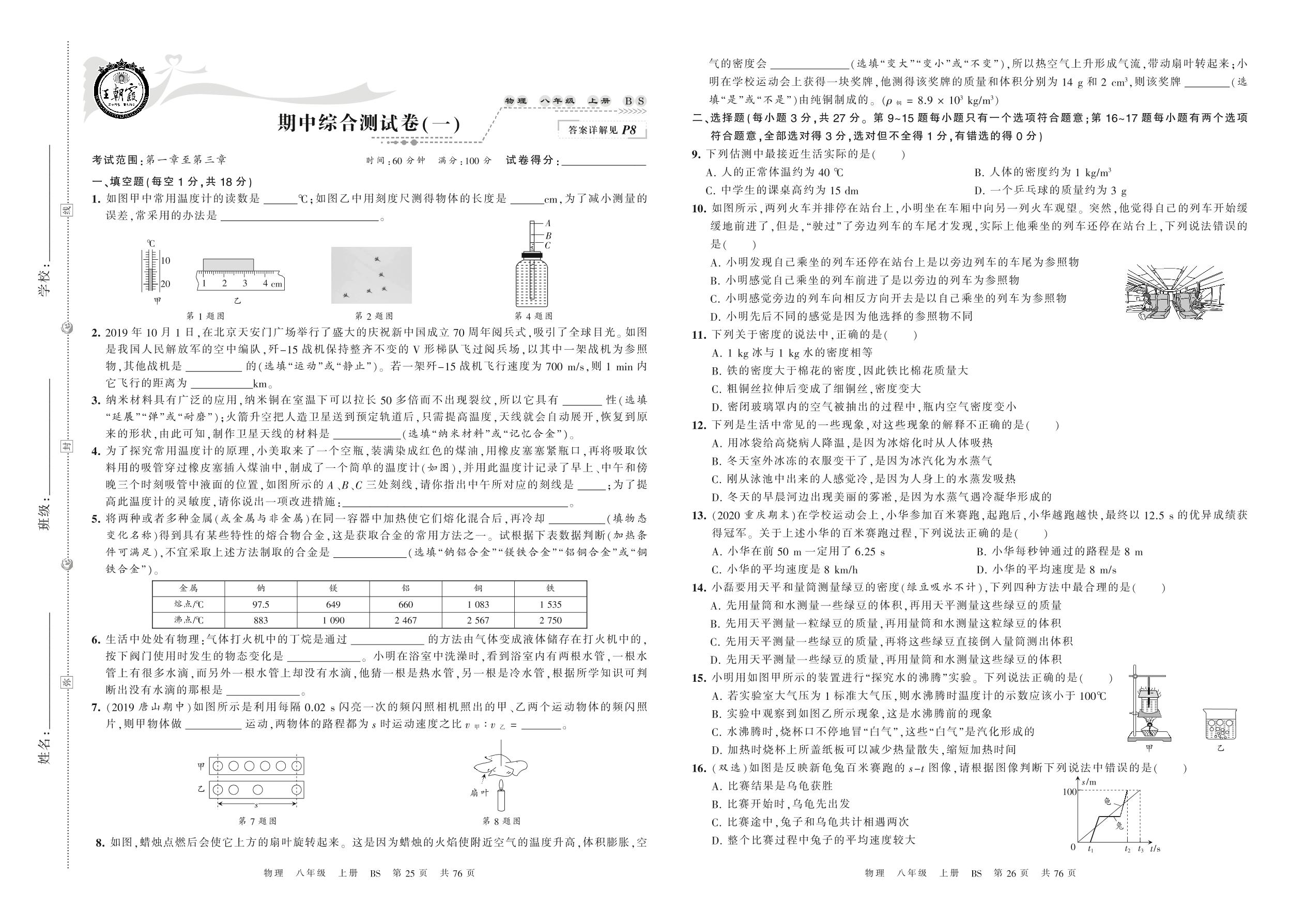 2021上册八年级物理北师版 期中综合测试卷 (一)