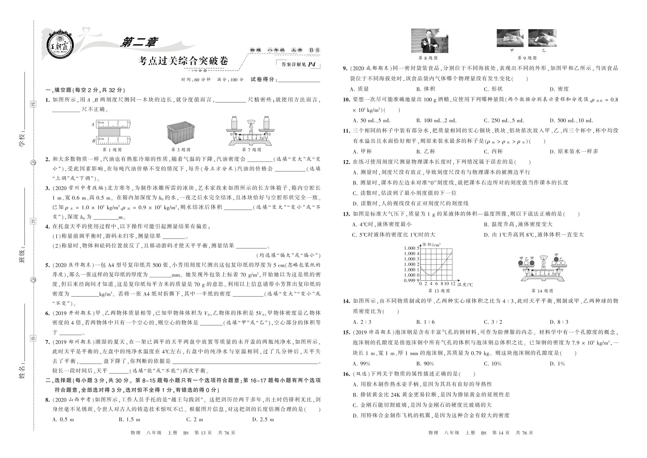 2021上册八年级物理北师版 第二章 考点过关综合突破卷