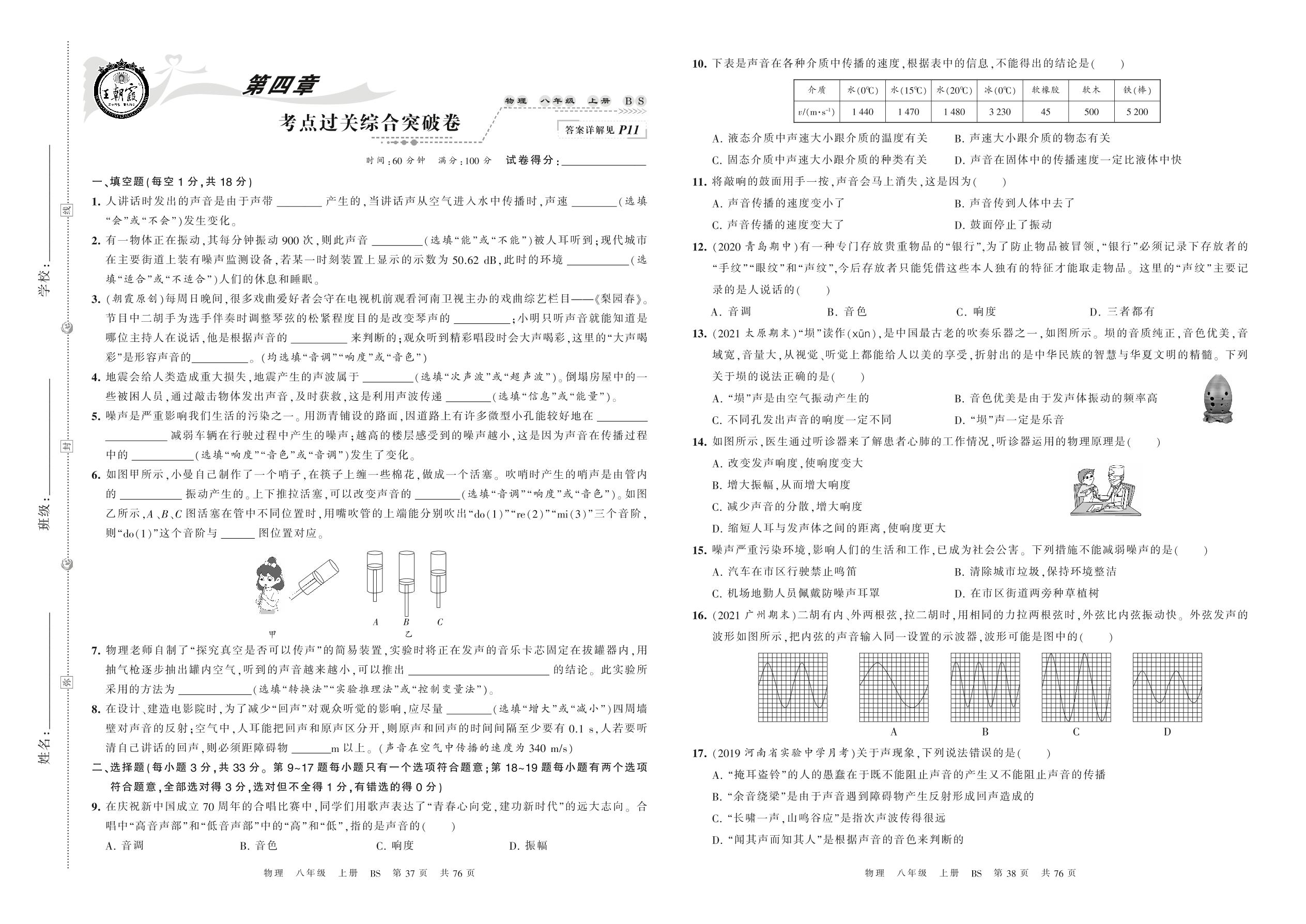 2021上册八年级物理北师版 第四章 考点过关综合突破卷