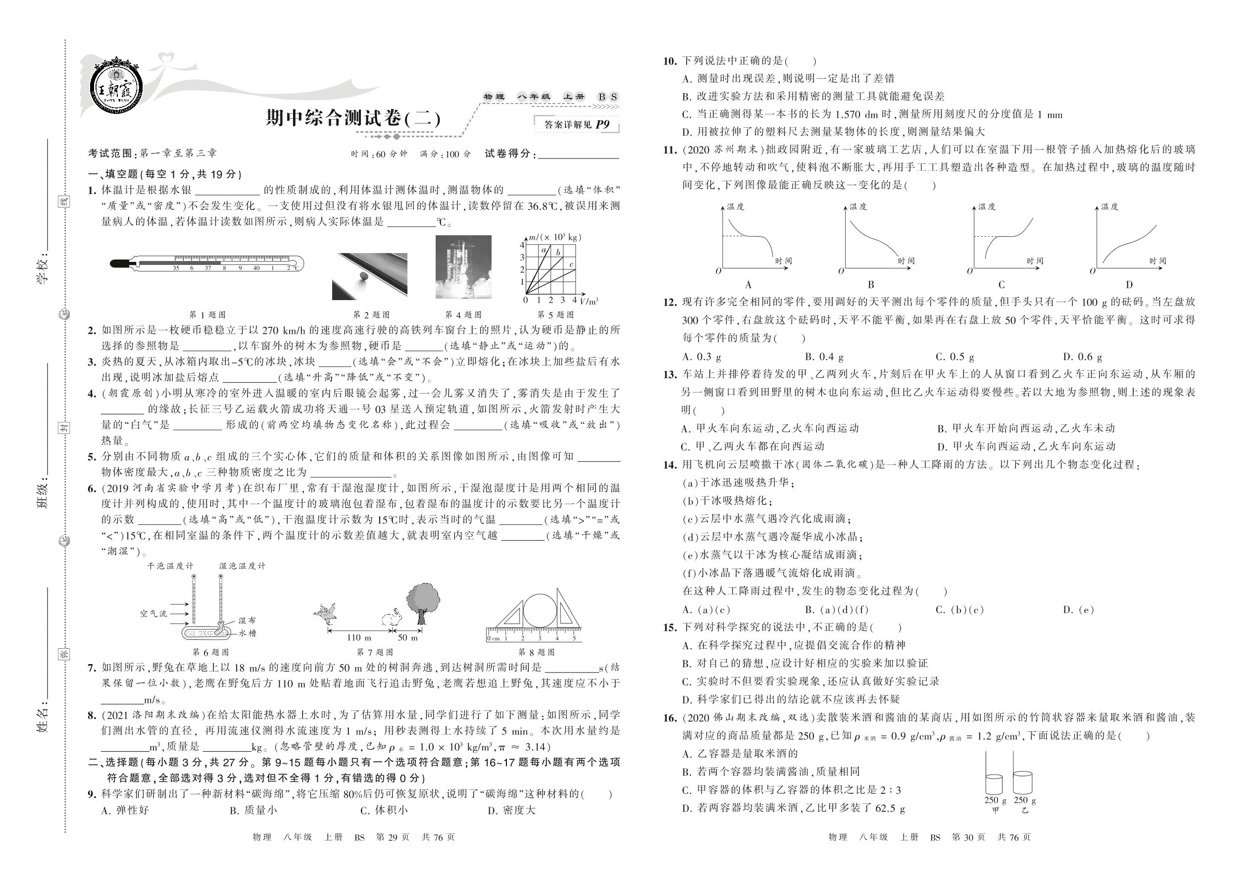 八年级物理北师版上册期中卷