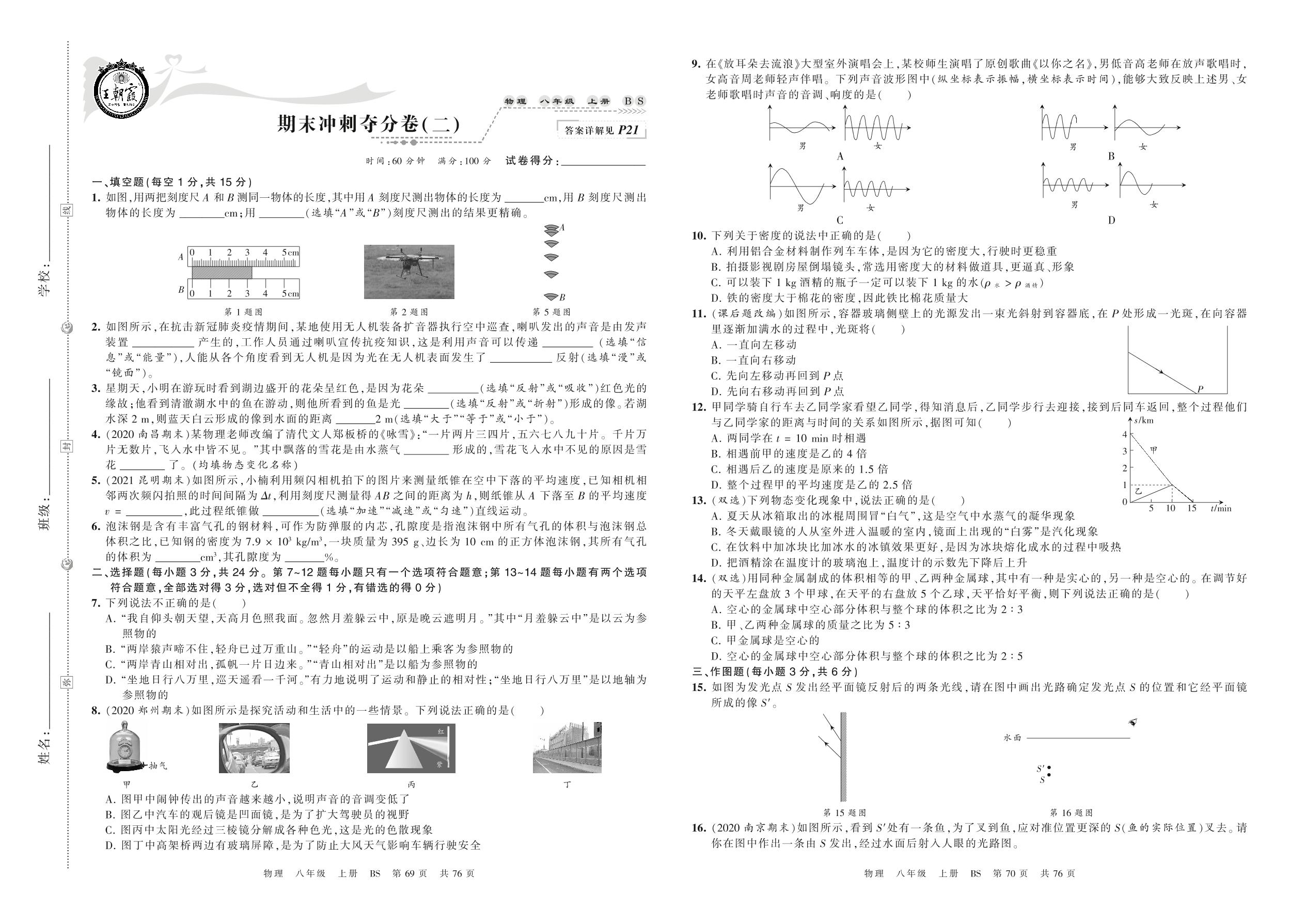 2021上册八年级物理北师版 期末冲刺夺分卷(二)