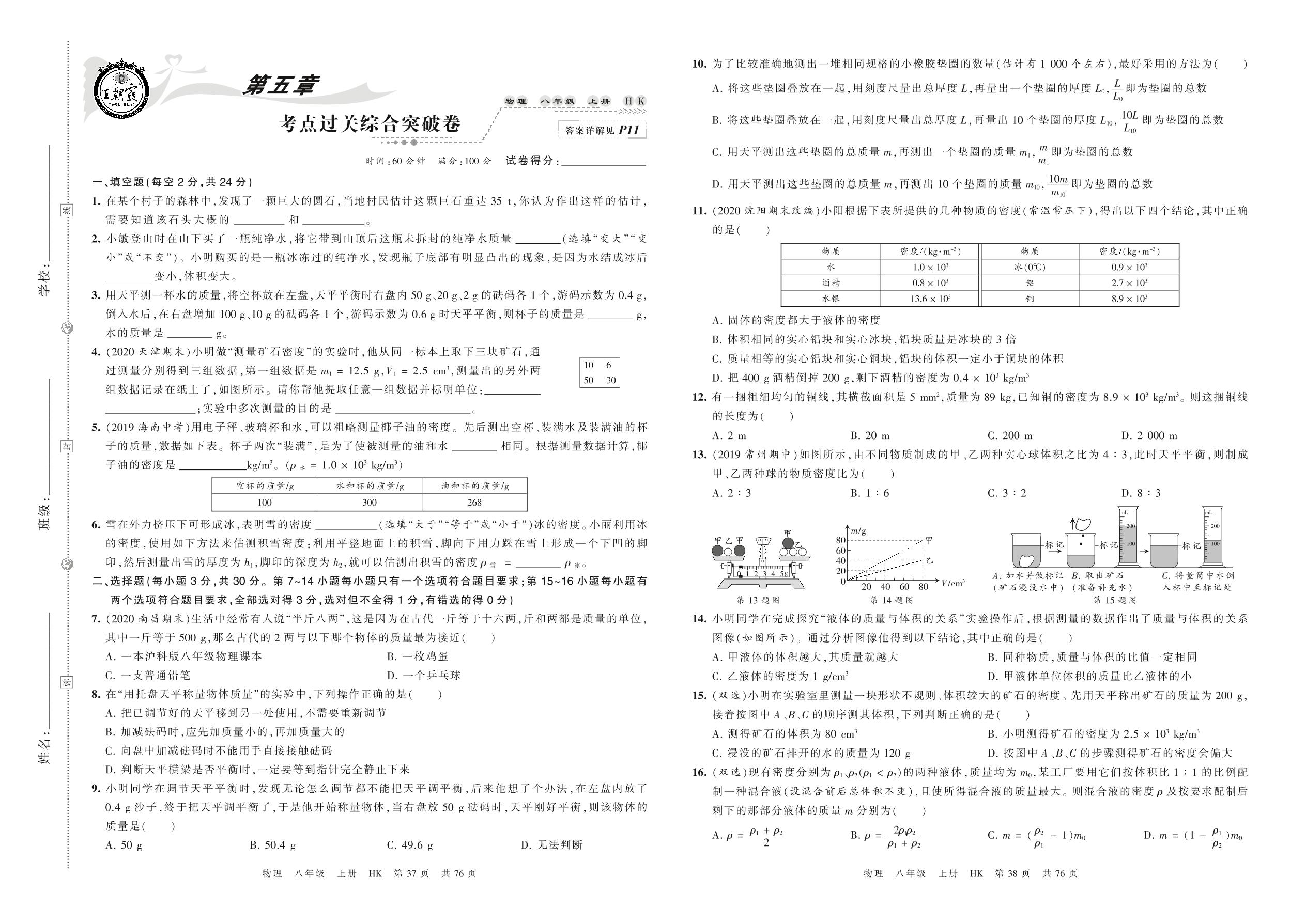 2021-2022学年八年级物理沪科版 第五章 考点过关综合突破卷