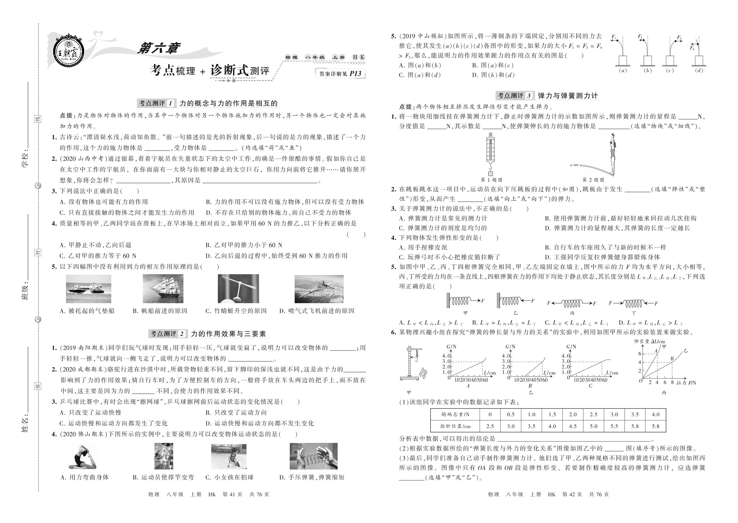 2021-2022学年八年级物理沪科版 第六章 考点梳理 + 诊断式测评