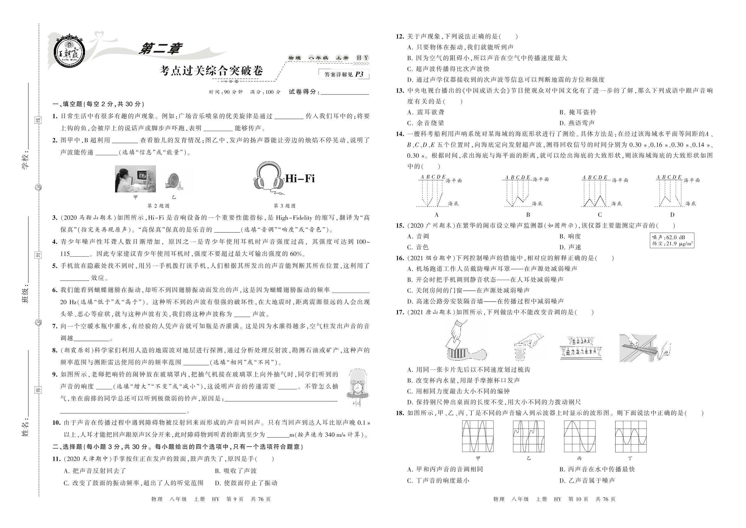 2021上册八年级物理沪粤版 第二章 考点过关综合突破卷
