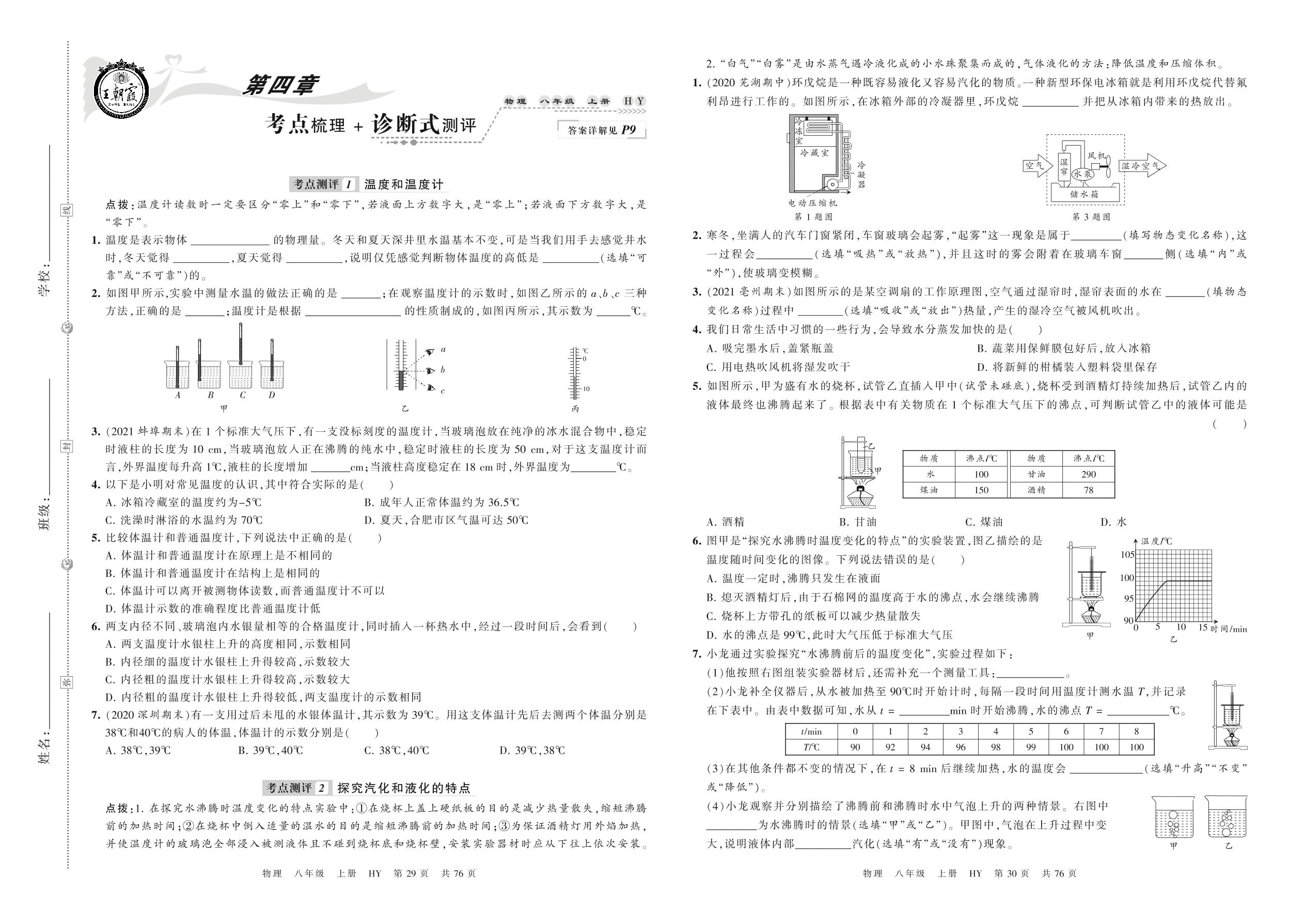 2021上册八年级物理沪粤版 第四章 考点梳理 + 诊断式测评