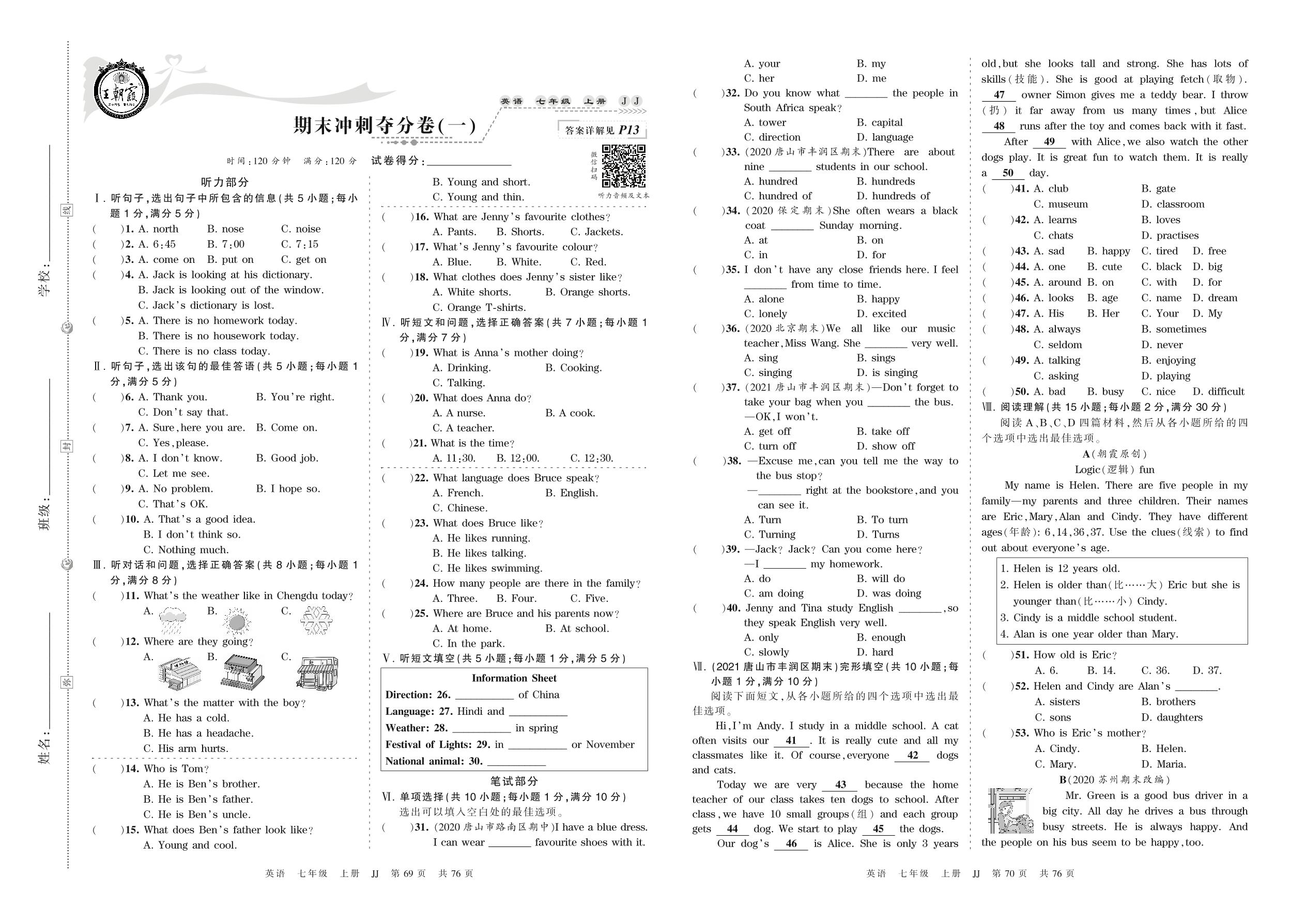 2021上册七年级英语冀教版 期末冲刺夺分卷(一)