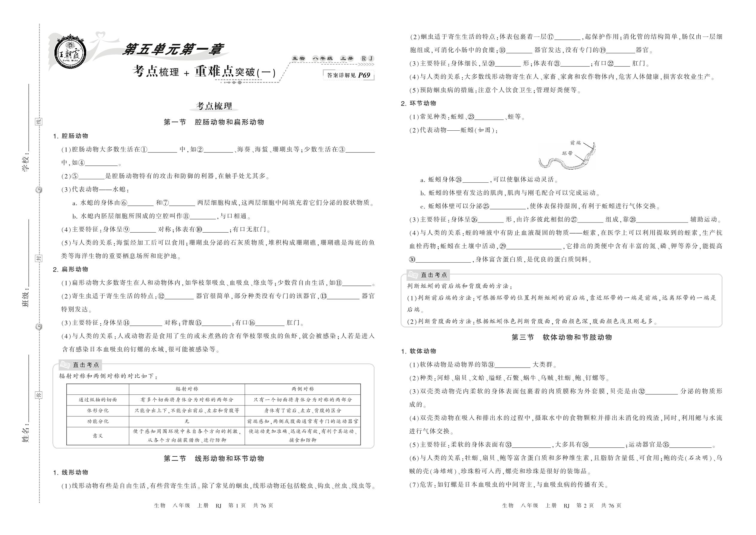 2021上册八年级生物人教版 第五单元第一章 考点梳理+重难点突破(一)