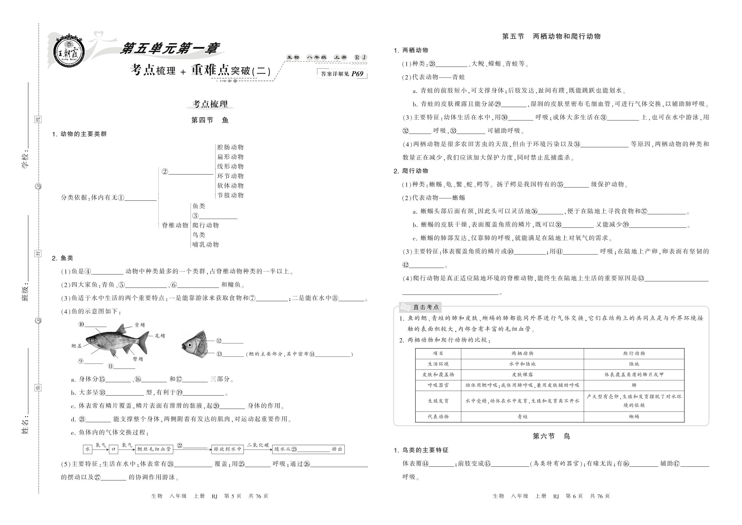 2021上册八年级生物人教版 第五单元第一章 考点梳理+重难点突破(二)