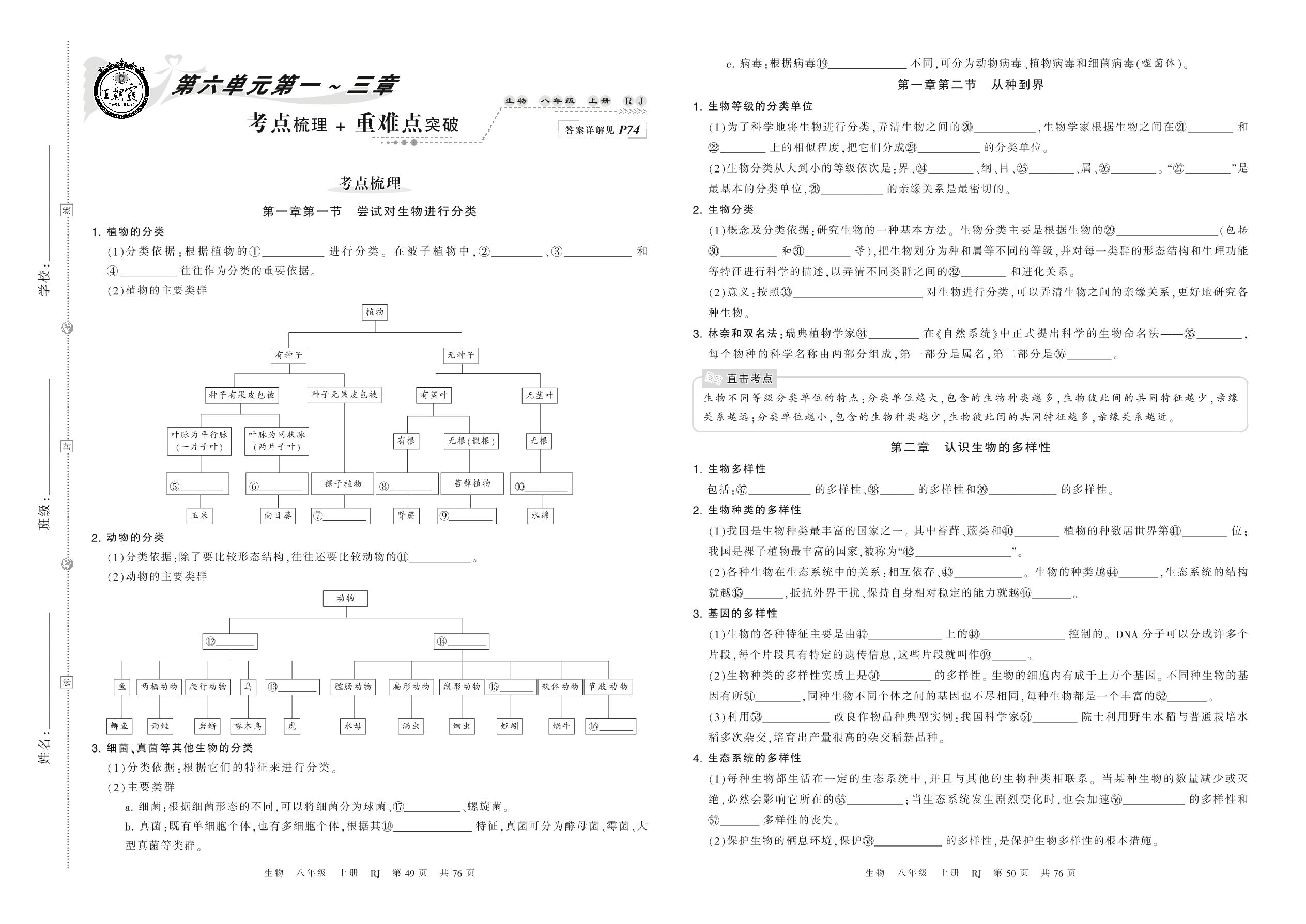 2021上册八年级生物人教版 第六单元第一~三章 考点梳理+重难点突破