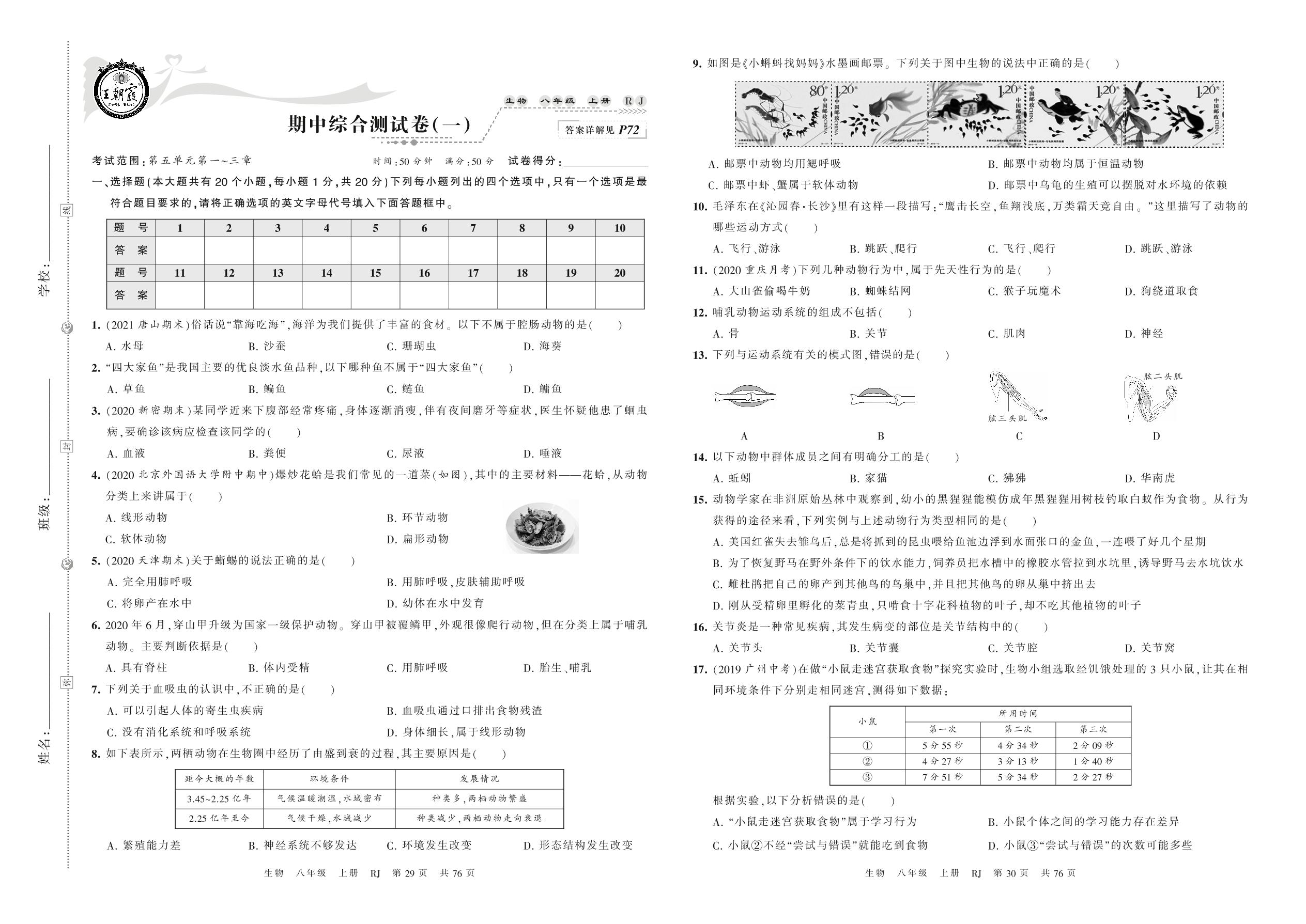 2021上册八年级生物人教版 期中综合测试卷(一)