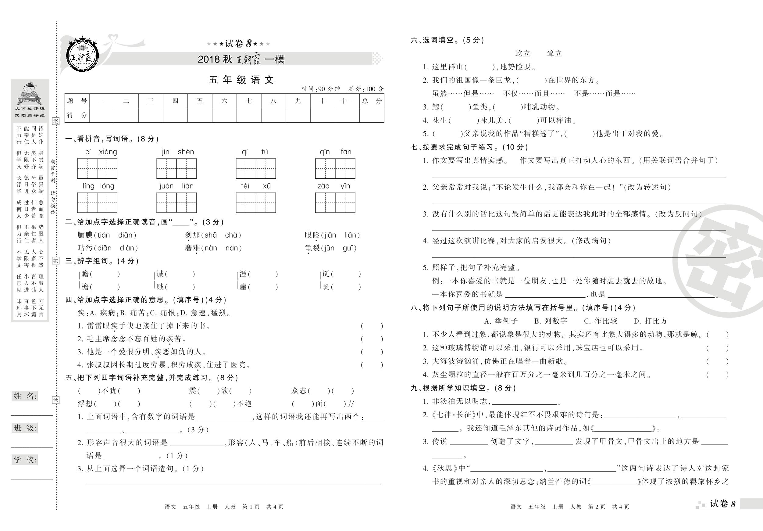 王朝霞期末模拟卷五年级上册语文(人教版)_R210801222205【8】