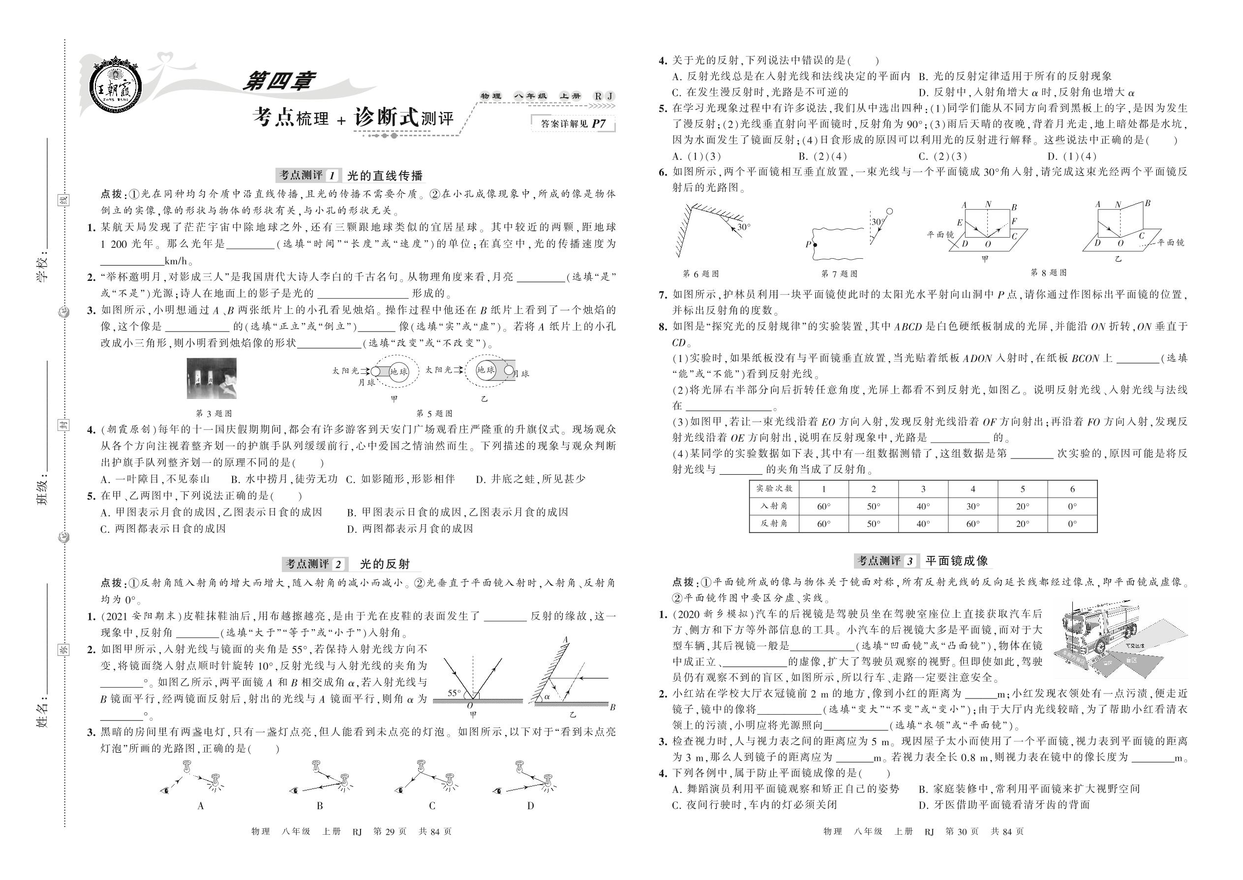 2021上册八年级物理人教版 第四章 考点梳理 + 诊断式测评
