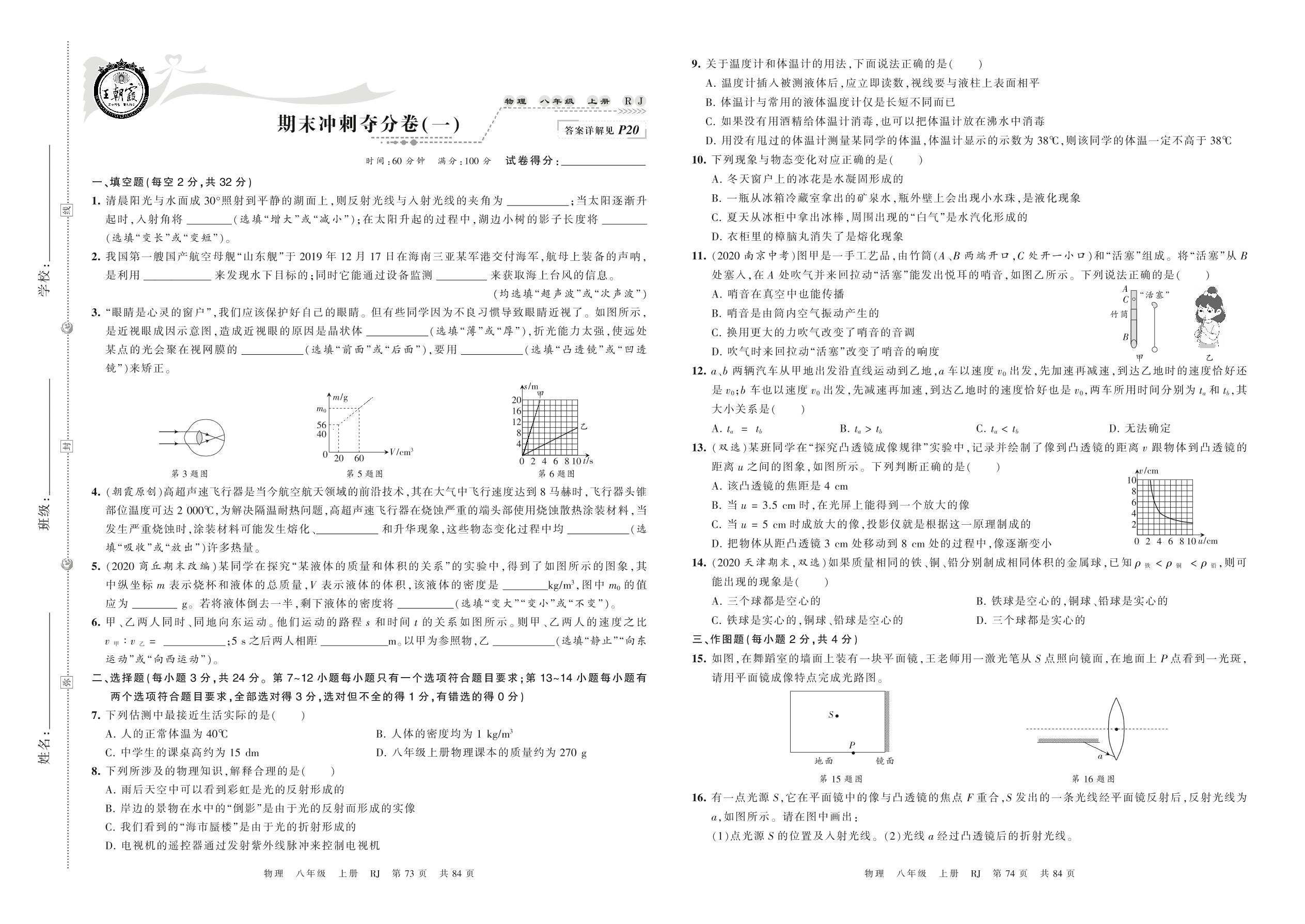 2021上册八年级物理人教版 期末冲刺夺分卷(一)